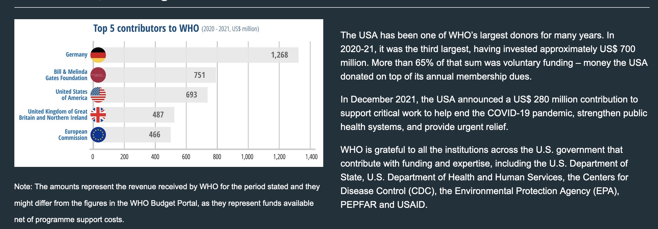 Biden restored the US contribution to WHO and gave more than ever before, most in voluntary contributions, some of which may have had something to do with WHO going along with USG plans for the pandemic treaty and IHR amendments.