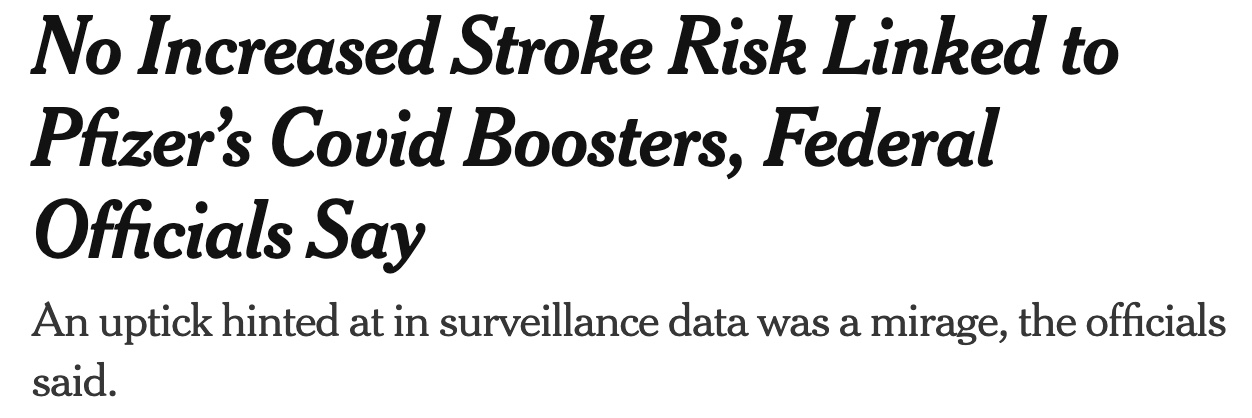 Friday night’s headlines re STROKE RISK from the bivalent booster have morphed and become benign. The WaPo, for example, tells us the following right now:
