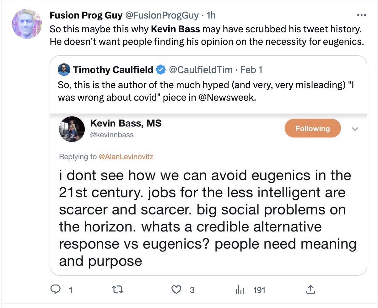It seems he used to tweet about eugenics. He liked it.