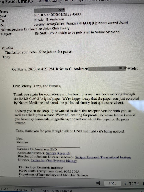 Today, I was sent a link by a reader (thanks!!!) to a specific one of Fauci’s emails, and the mystery of why 5 well known scientists coauthored drivel, which the venerable Nature Medicine journal published, was solved.