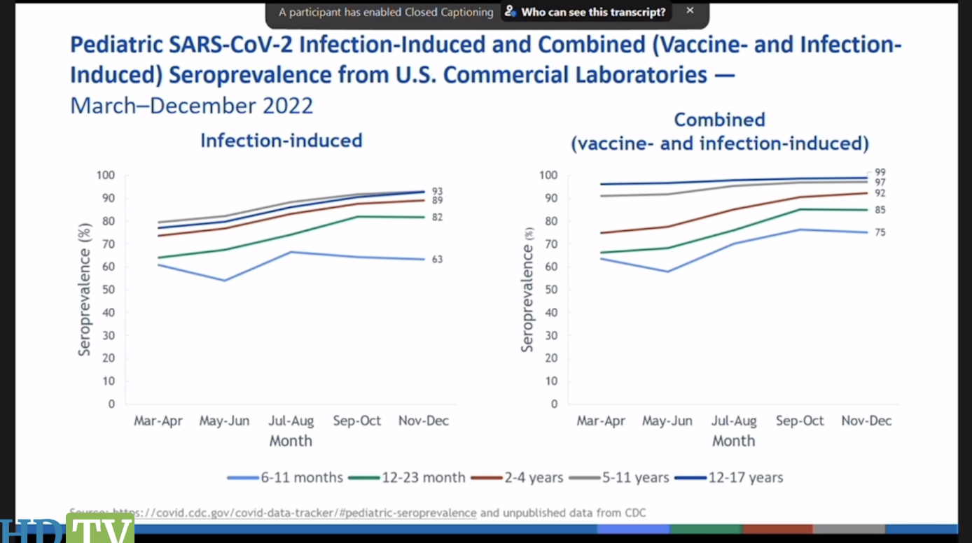 Should you vaccinate kids? Look at how small is the increase in antibody positivity against COVID when comparing the naturally infected on the left with the infected and vaccinated group on the right in this CDC graph. The “benefit” from additionally being vaccinated is marginal, 3% or 4% in most age groups—if it is in fact a benefit.