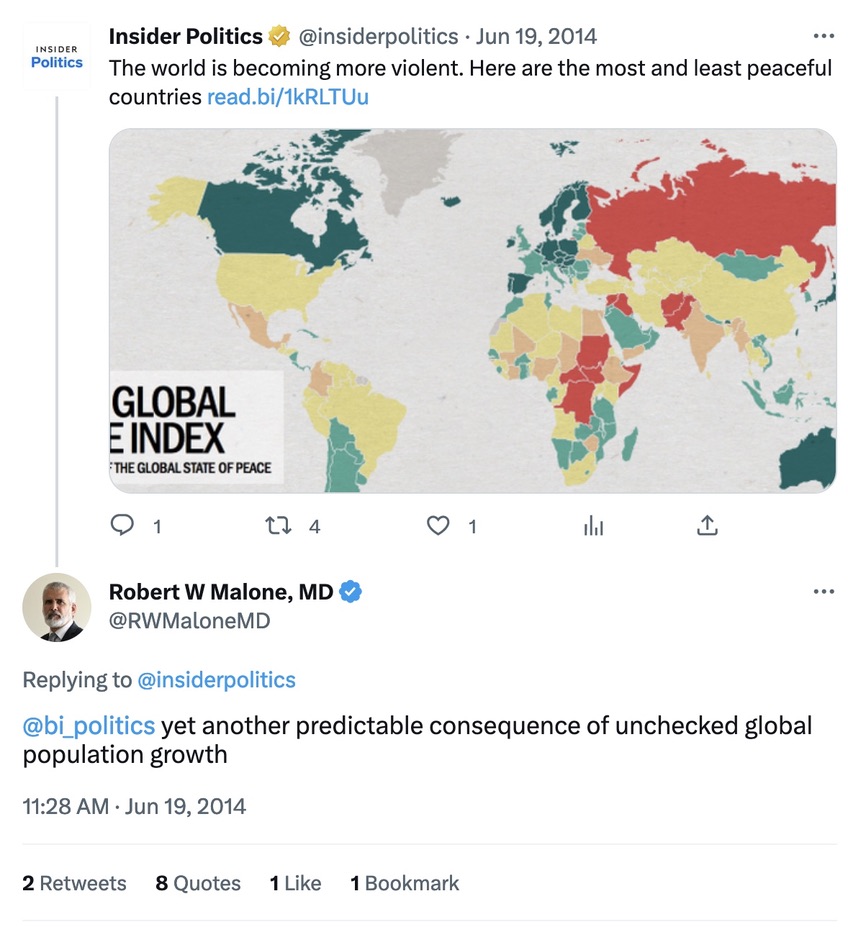 Yet another counterfeit tweet claimed to have been written by Robert Malone. In this fabricated missive he appears to be desirous of population reduction. Will it be slavery next? However, that photo of him had not yet been taken in 2014. Hmmm…