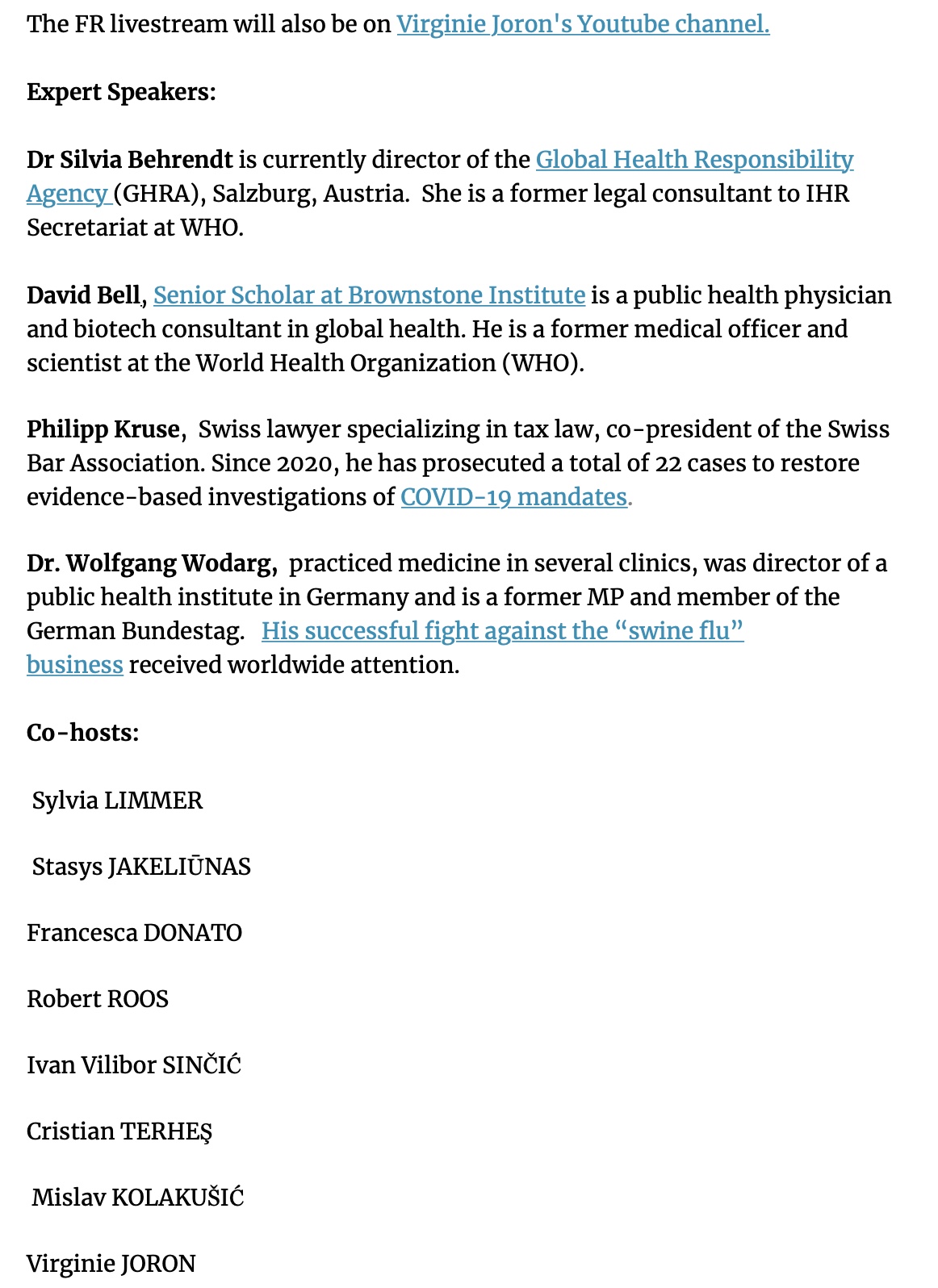 The WHO’s efforts to gain sovereignty over nations during public health emergencies: European symposium last week