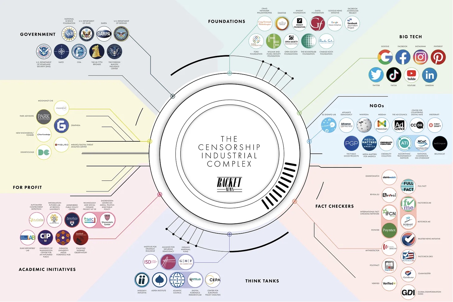 Matt Taibbi’s The Racket published a fabulous compendium on the evil censorship network that is dismantling the concept of freedom. Until we obliterate this scourge don’t expect that much of what you see and hear is actually true.