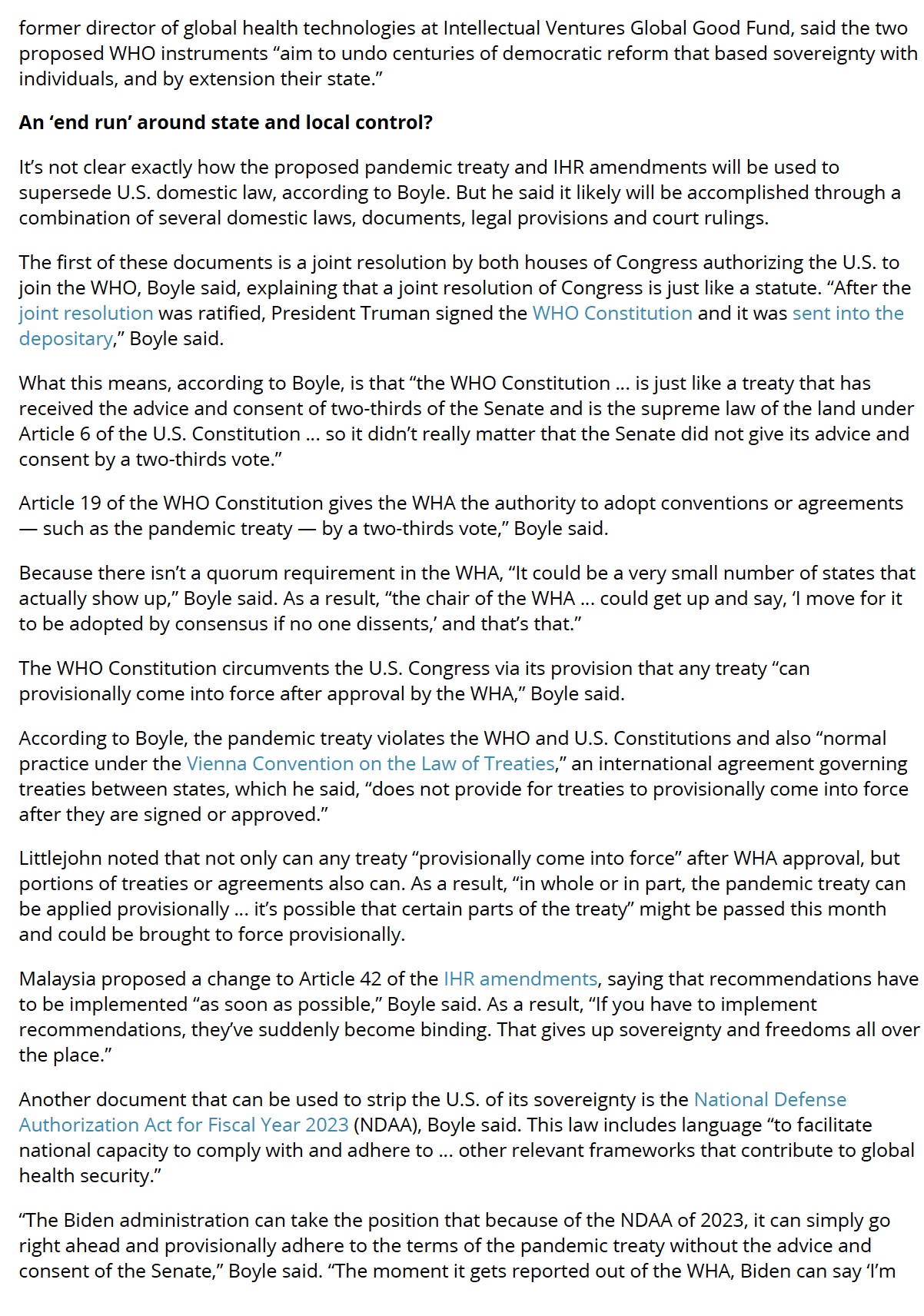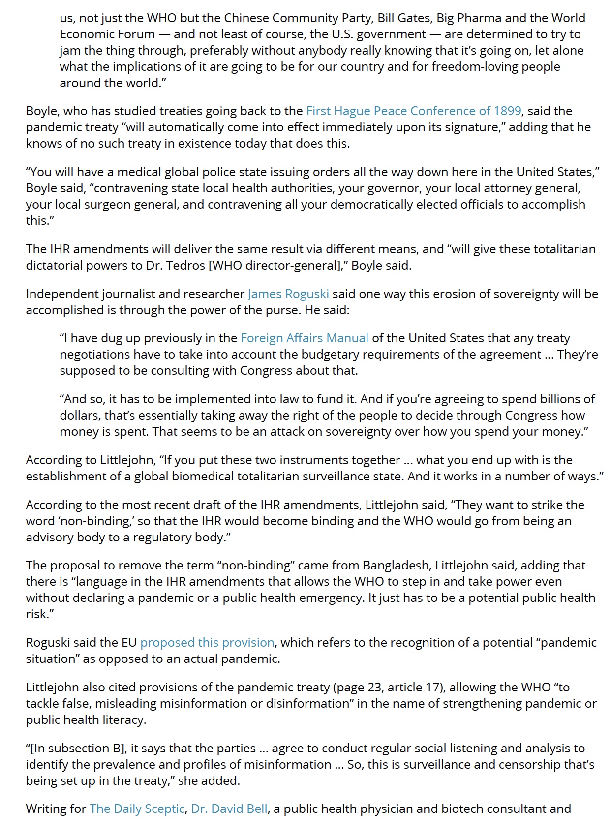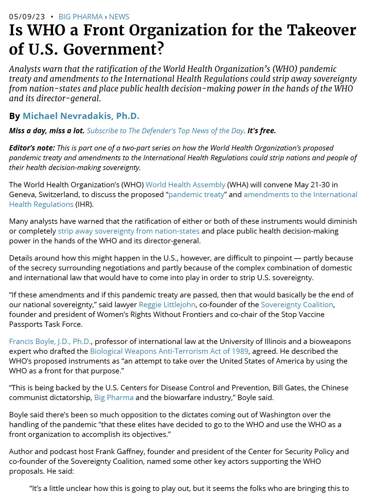 What is the proof that the W.H.O.’s pandemic treaty and/or IHR amendments (proposed) will truly grab sovereignty over global health and ‘One Health’?