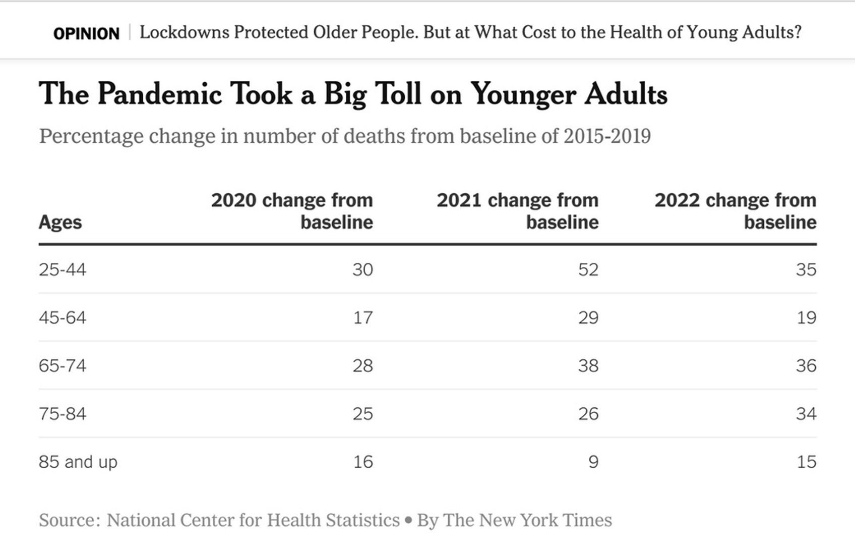 Actually, the lockdowns recommended by the WHO certainly failed to improve public health, as acknowledged even by the NY Times. WHO failed to recommend improving ventilation as a major means to prevent transmission of SARS-CoV-2 for the longest time, even after hundreds of scientists asked it to change this policy. COVID has impoverished hundreds of millions. So how has public health been improving? The numbers below are frightening, though in accord with what Ed Dowd has been telling us. Should we let the privately captured WHO decide the priorities for our health?