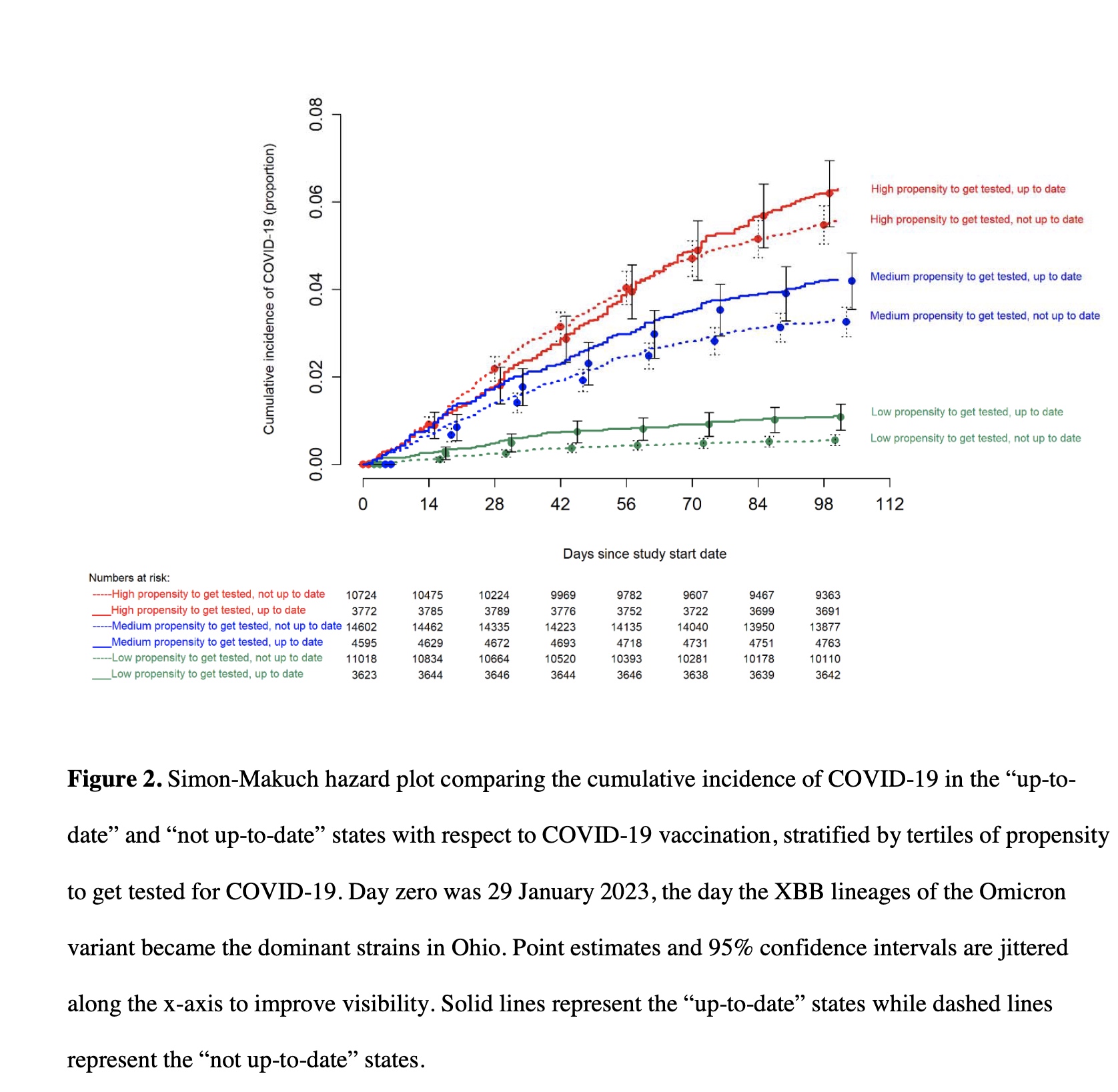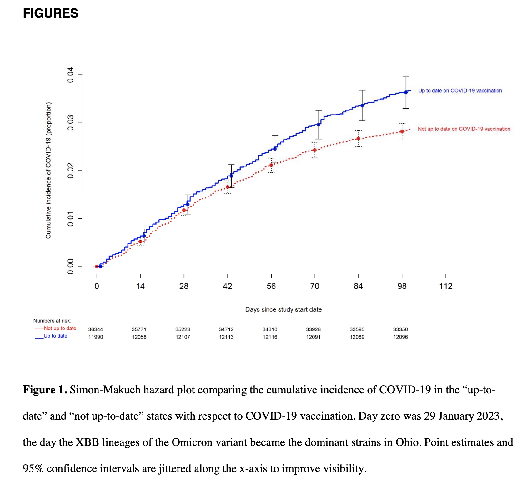 In conclusion, this study found that not being “up-to-date” on COVID-19 vaccination by the CDC definition was associated with a lower risk of COVID-19 than being “up-to-date”. This study highlights the challenges of counting on protection from a vaccine when the effectiveness of the vaccine decreases over time as new variants emerge that are antigenically very different from those used to develop the vaccine. It also demonstrates the folly of risk classification based solely on receipt of a vaccine of questionable effectiveness while ignoring protection provided by prior infection.