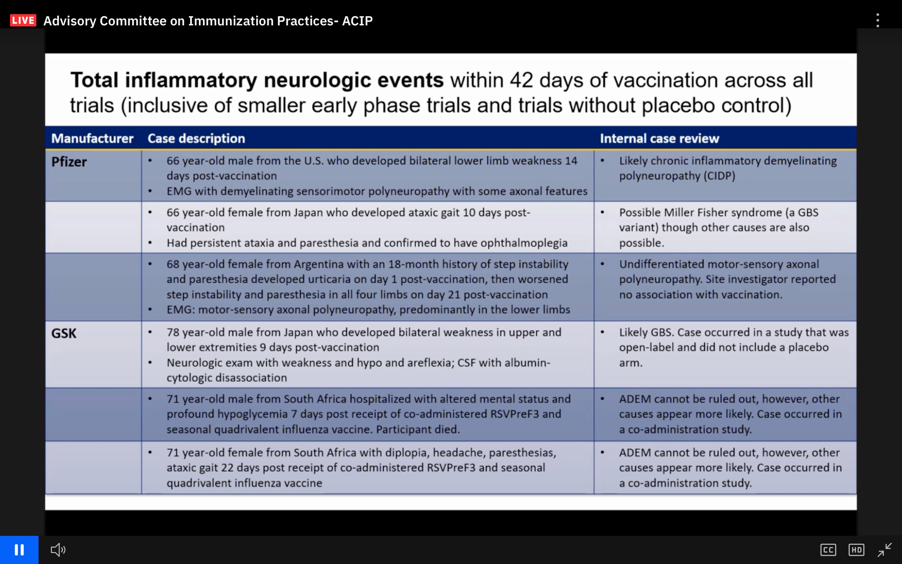 What crashed the show was a member of the ACIP asking what it was that induced CDC to look for acute disseminated encephalomyelitis when it was not supposed to occur after inactivated vaccines? See 2nd footnote.