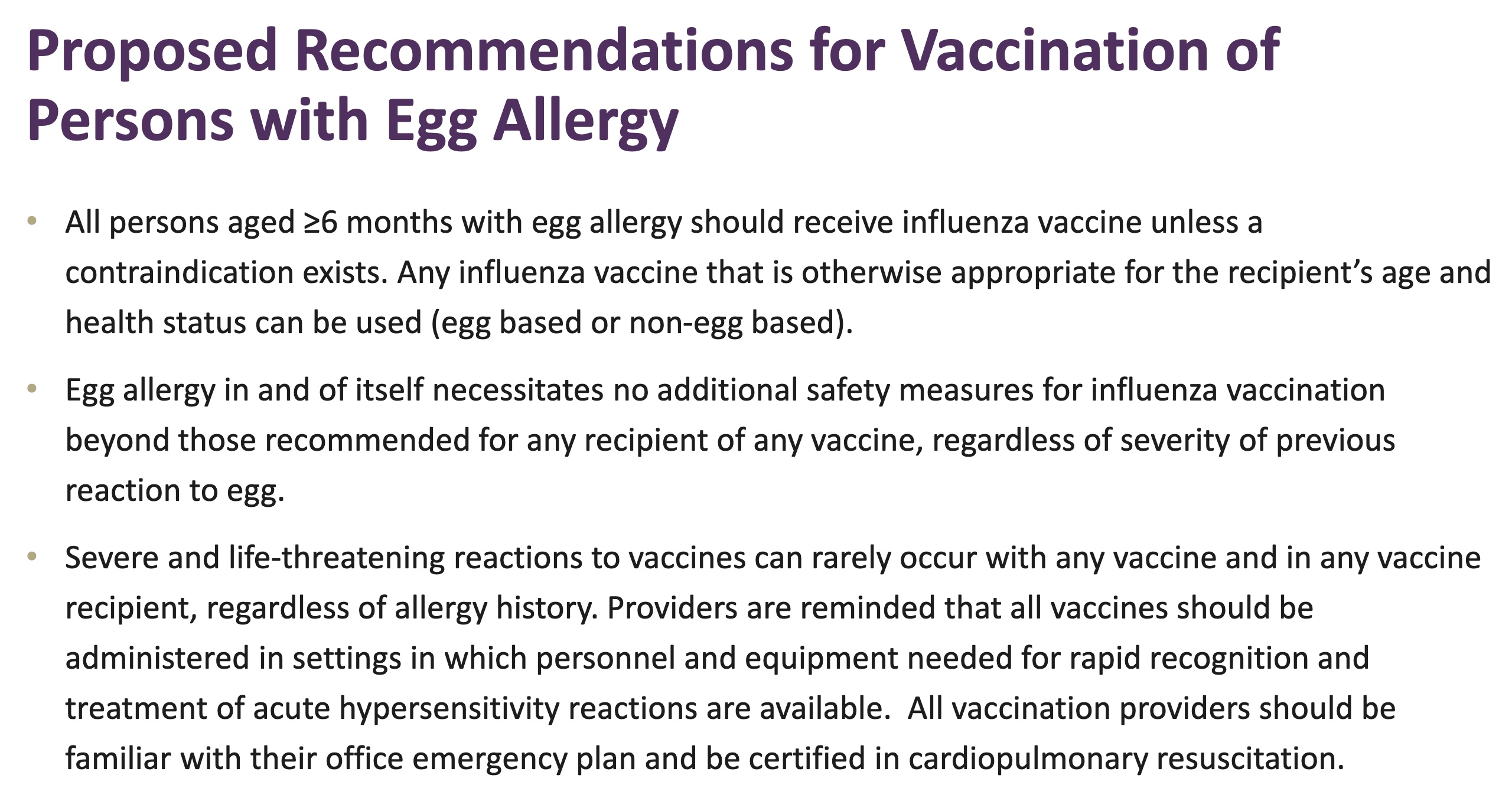 Now they want to get rid of egg allergy as a contraindication to vaccines made in eggs. Basically CDC has been trying to get rid of vaccine contraindications for the past 5 years, despite lack of supportive evidence.