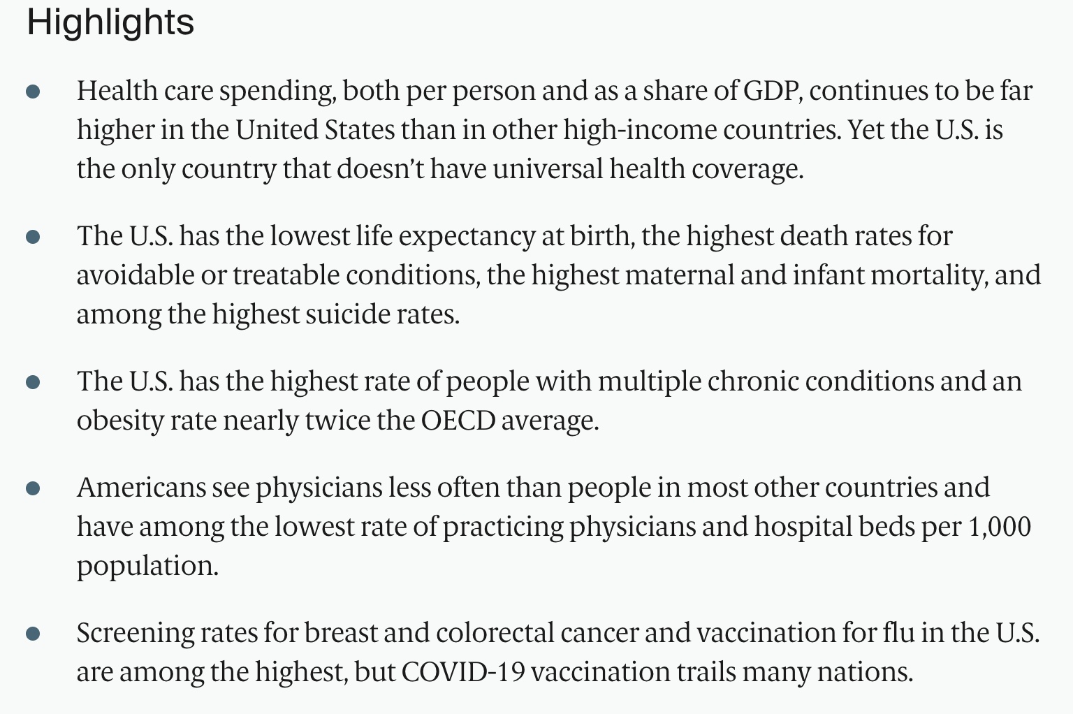 One problem is that there is simply too much money in the system: it sucks in about $13,000 pp/year in 2021 or 18% of GDP, despite the fact that outcomes are poor.