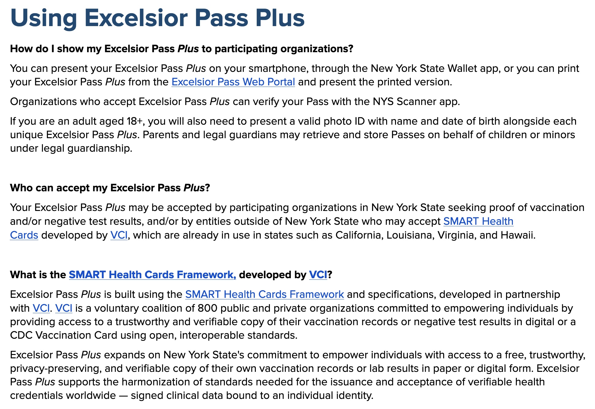 But just above it is the notice that the “NYS Wallet App will be discontinued on July 28th.” However the Excelsior Pass, the Excelsion Pass Plus and the Smart Health Cards Framework continue to be advertised. I hate how the PR consultants try and trick people with language: the pass will ‘empower’ individuals by sharing their health information with unknown ‘partners’ and ruining their privacy.