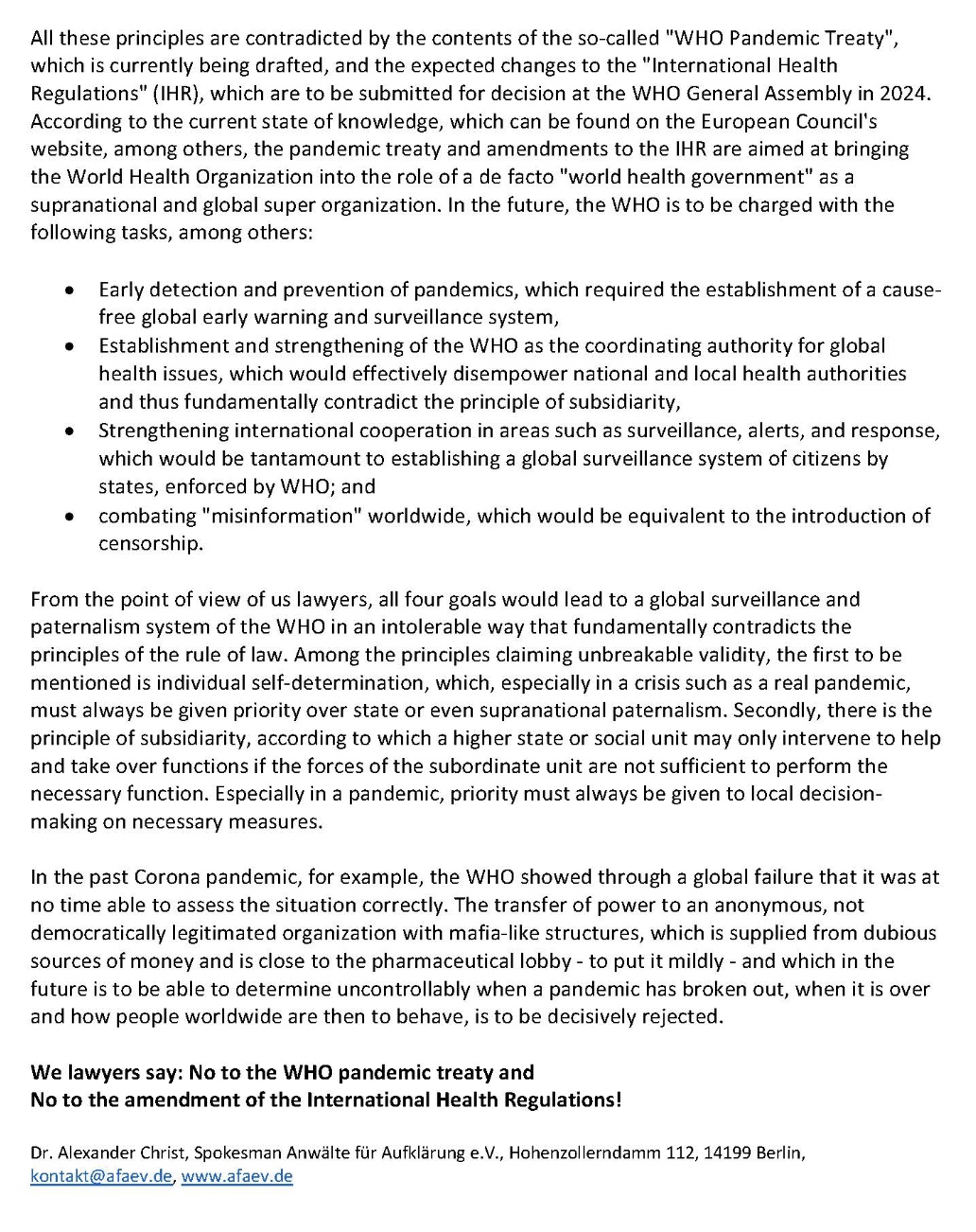 Attorneys from 10 countries speak out against the WHO power grab to take over management of global pandemics, with mandates