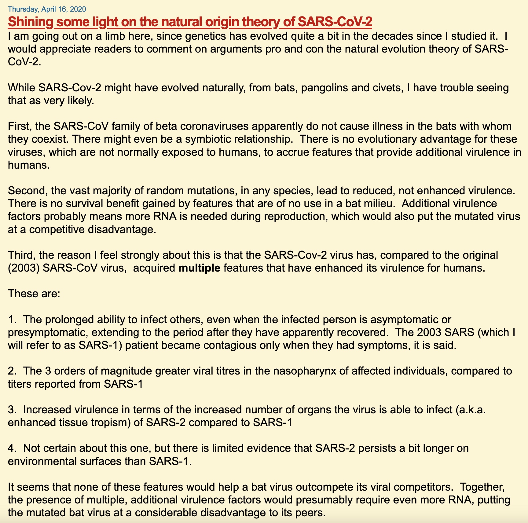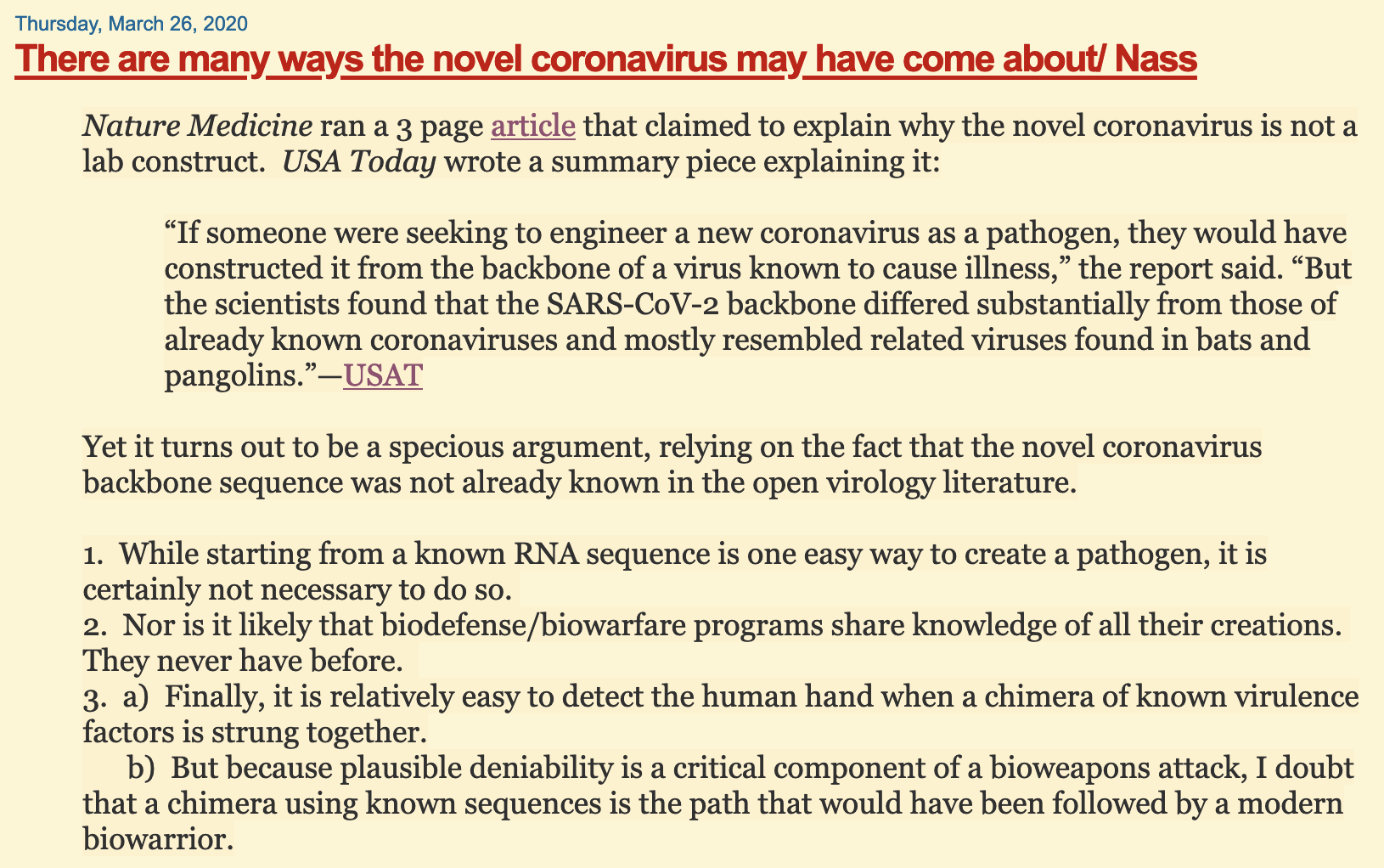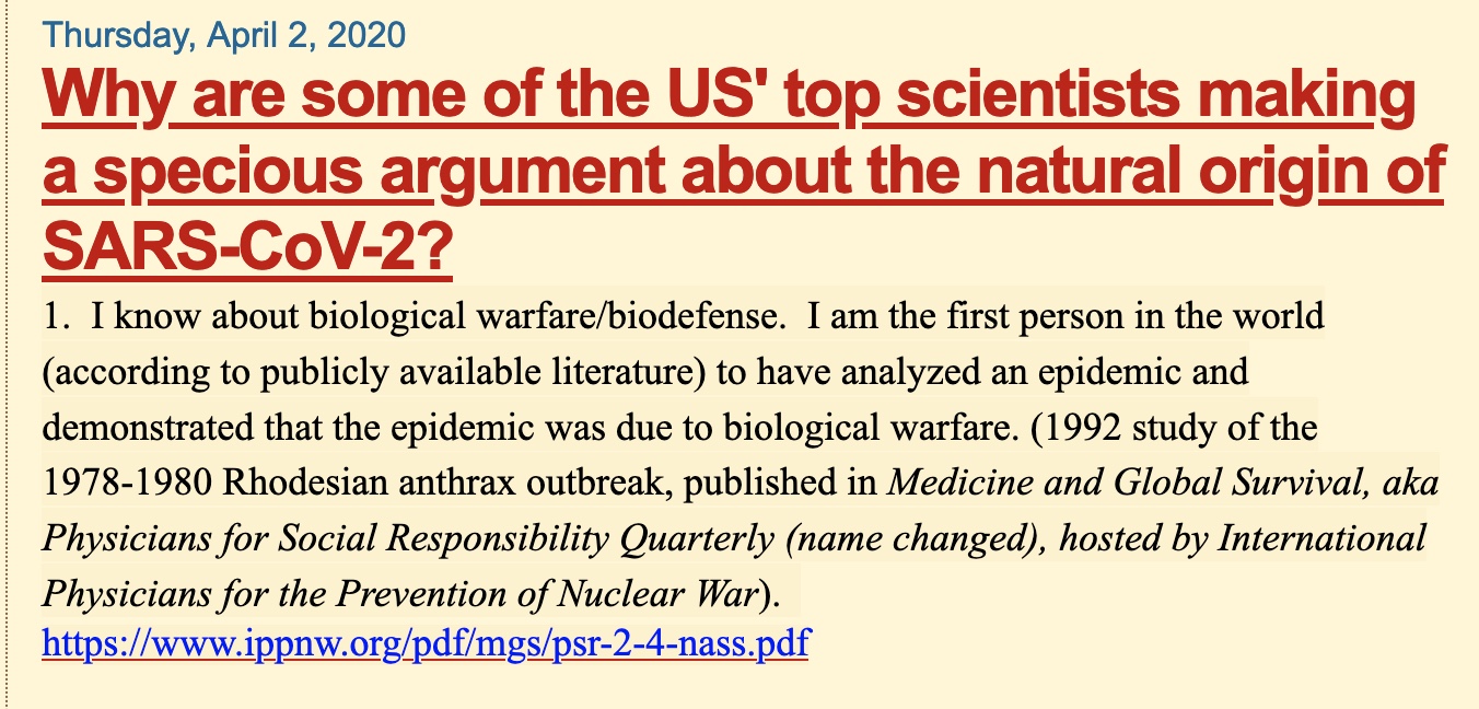 Below are five of my early articles on this subject. I just screenshot the beginning of each one, to show I was in fact the #2 person (after Dan Sirotkin) to publicly criticize the COVID Proximal Origins paper as bunk. (I was not aware of Dan’s work at the time) and I think JJ Couey told me about Dan.