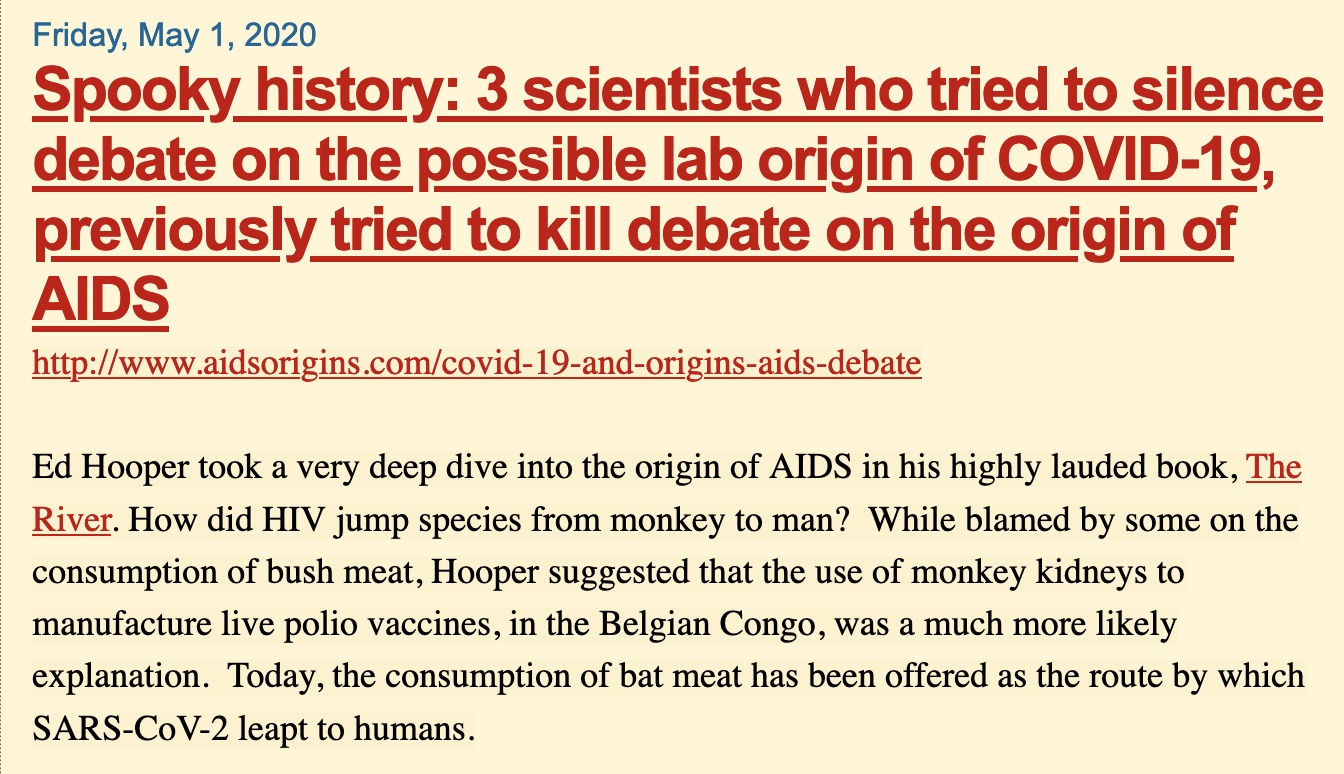 Farrar was named as the person who shepherded the Proximal Origins paper. He was the ‘father’ of the paper according to Andersen. Yet Andersen then tries to say he had almost nothing to do with it. But he suggests that Eddie Holmes asked Farrar if he wanted his name on the paper. Farrar apparently knew better than to put his fingerprints on this false narrative so his name is not mentioned in the published paper. We know from emails that Farrar made at least one edit to the paper, and his edit was designed to make the narrative stronger.