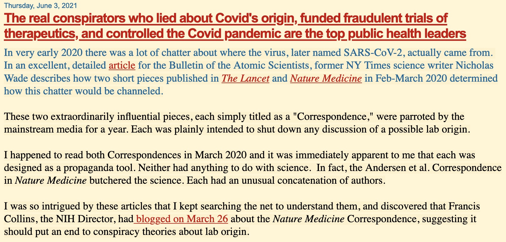 Some comments on the hearing: How did the 5 authors manage to change their minds from lab origin to natural origin in 4-5 days? They had a draft of the Origins paper ready 3 days after their meeting with Fauci, Farrar and Collins.