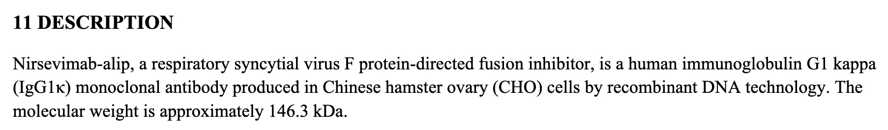1. What is a monoclonal antibody? In this case, it is a genetically engineered antibody produced in hamster ovary cells. https://www.accessdata.fda.gov/drugsatfda_docs/label/2023/761328s000lbl.pdf