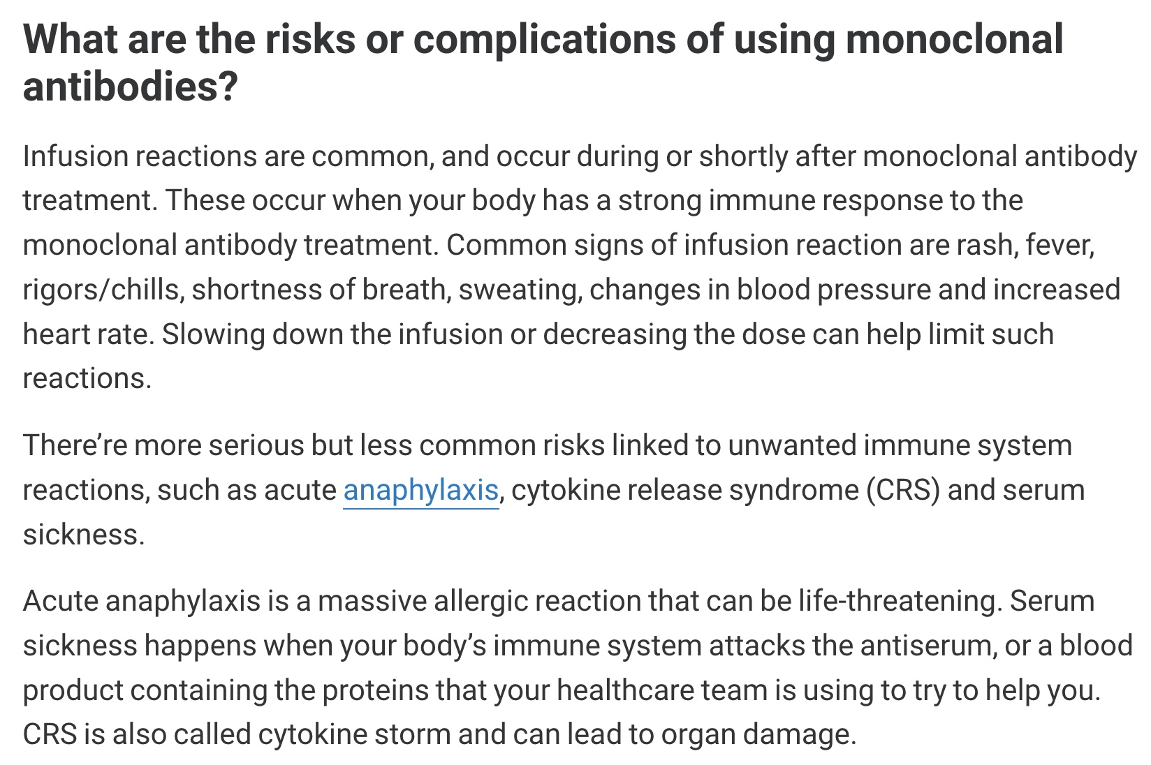 Here is what the Cleveland Clinic says about risks from other monoclonal antibodies: