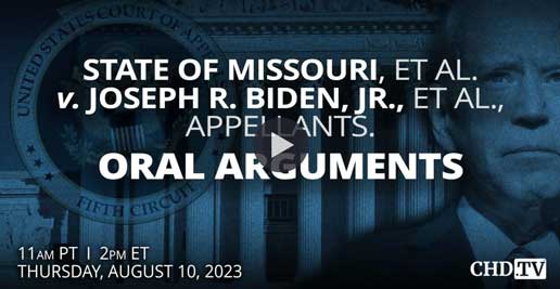 In the exceedingly important case First Amendment case Missouri v Biden, for which CHD has been added as a party, there will be oral arguments tomorrow. You can watch on CHD-TV.