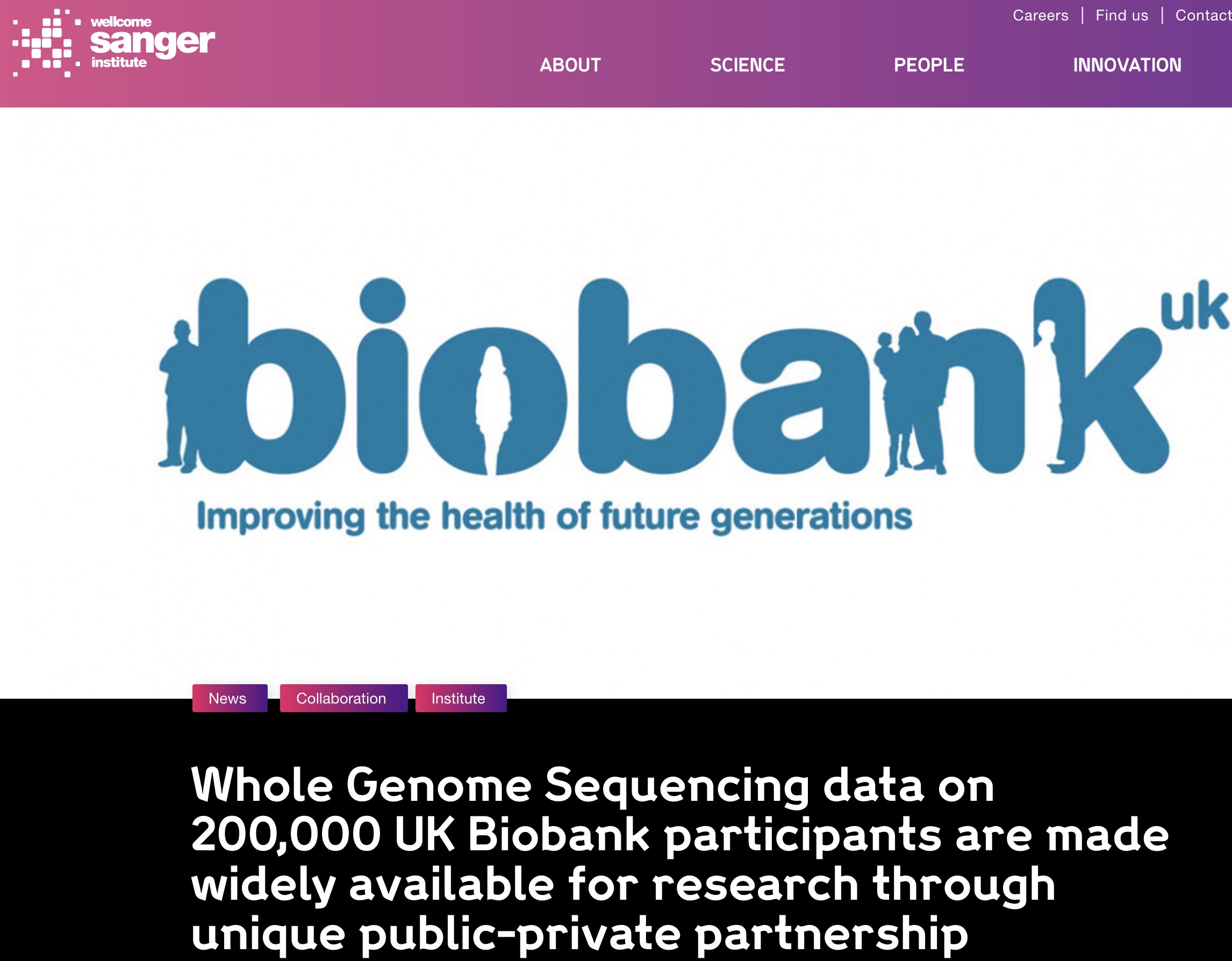 The whole genome sequencing (WGS) of all 500,000 UK Biobank participants is the most ambitious project of its kind ever undertaken. It has been funded through a public-private partnership involving Amgen, AstraZeneca, GlaxoSmithKline (GSK) and Johnson & Johnson[3], alongside Wellcome and UK Research and Innovation (UKRI), and sequencing has been carried out by deCODE Genetics and the Wellcome Sanger Institute[4]. The release of these 200,000 whole genomes today will be followed up by the release of the WGS data for the remaining 300,000 participants in early 2023.