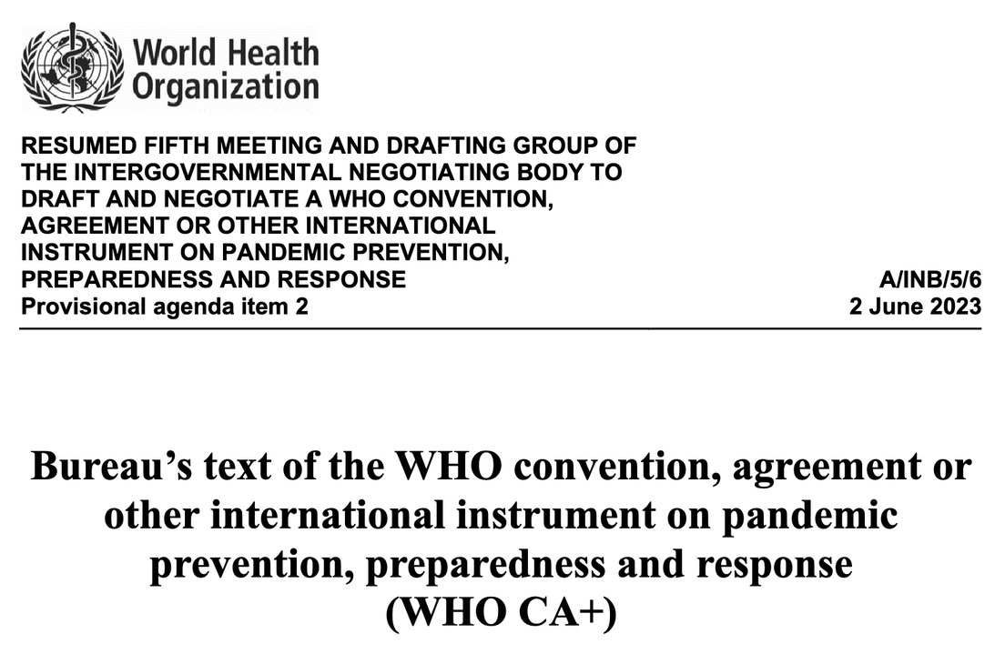 The latest version (aka the WHO Bureau draft) of the pandemic treaty can be accessed here. I provide screenshots below to illustrate additional points.