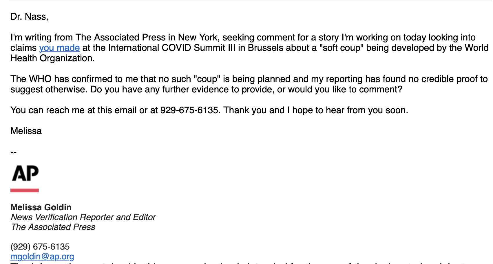 The WHO message is reverberating. The AP is running a hit piece on me by a reporter who has not and did not intend to read the WHO documents.