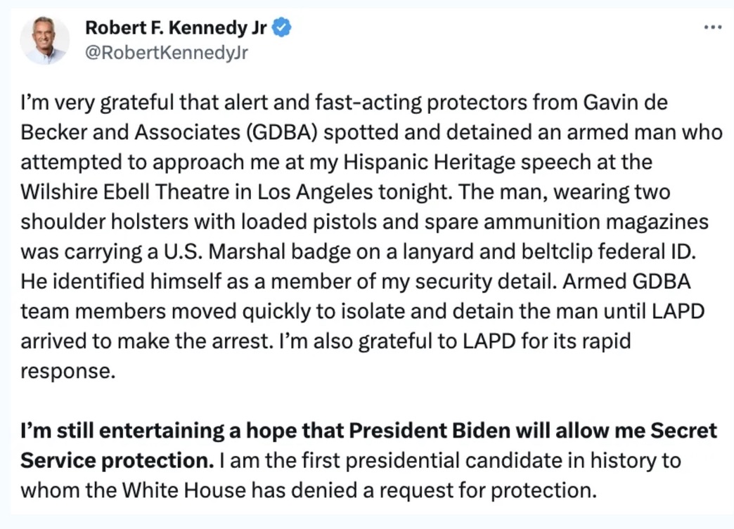 RFK Jr. event last night marred by man impersonating event staff who carried a firearm