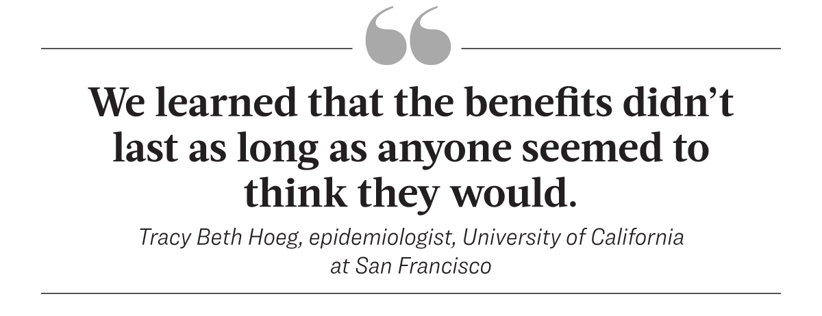 “You always find out more risks down the road,” Dr. Hoeg said. “And then of course we learned that the benefits didn’t last as long as anyone seemed to think they would.”