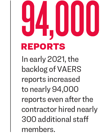 Just a third of the cases reported to VAERS through April 26, 2021, were fully processed as of May 3, 2021, according to an internal presentation.