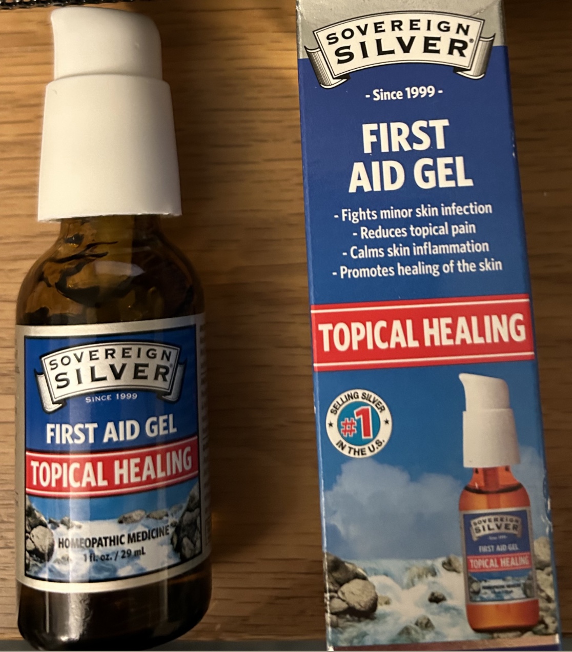 But I just found something easier for difficult spots. Robert Scott Bell interviewed me in Salt Lake City a couple of months ago, and gave me some of his goodies as a gift. One of them was called “Sovereign Silver First Aid Gel, Topical Healing.”