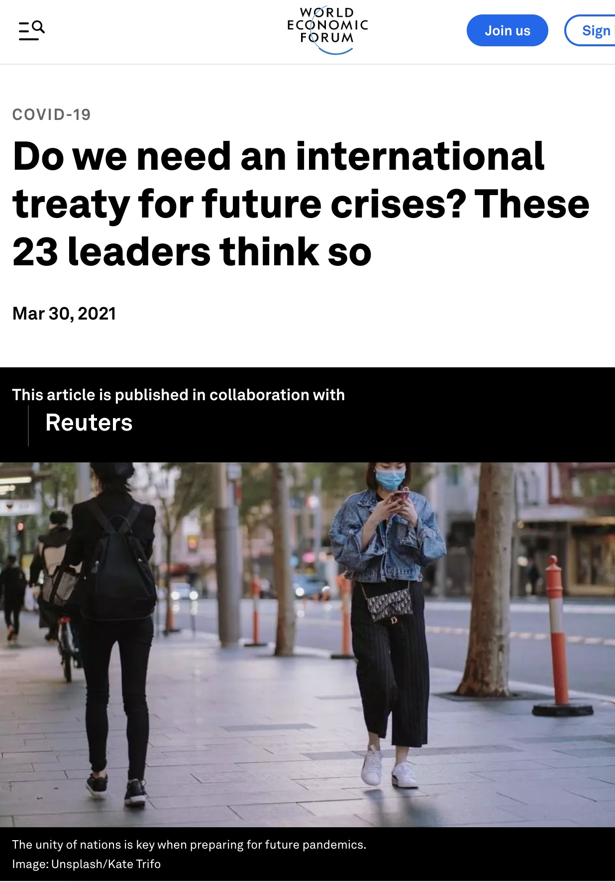 “We believe that nations should work together towards a new international treaty for pandemic preparedness and response,” they said. Who really wrote this opinion article?