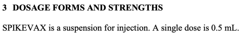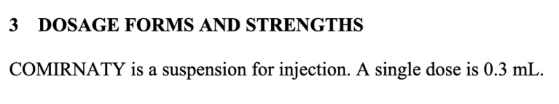 Additionally, as any high school student could tell you, 0.3/0.5mL is a volume, not a strength. We don’t know any quantitative specifics of what is contained in that 0.3/0.5mL such as: How many LNP particles? What size/morphologies of those LNPs? How many mRNA sequences in that volume?