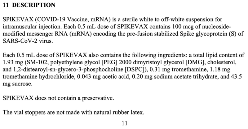 Every other FDA-approved drug — including other mRNA drugs — contains full ingredient disclosures on their products, including a structural representation and molecular weight of their product so people know exactly what they are getting.