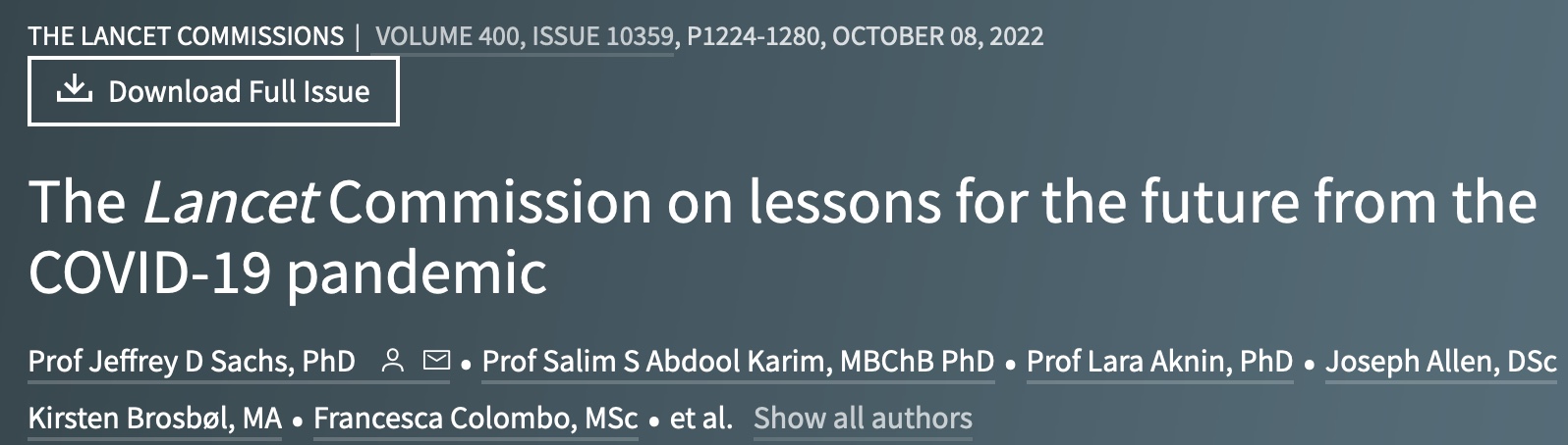 Jeffrey Sachs today and yesterday. Quotes from the Lancet COVID-19 Commission Statements