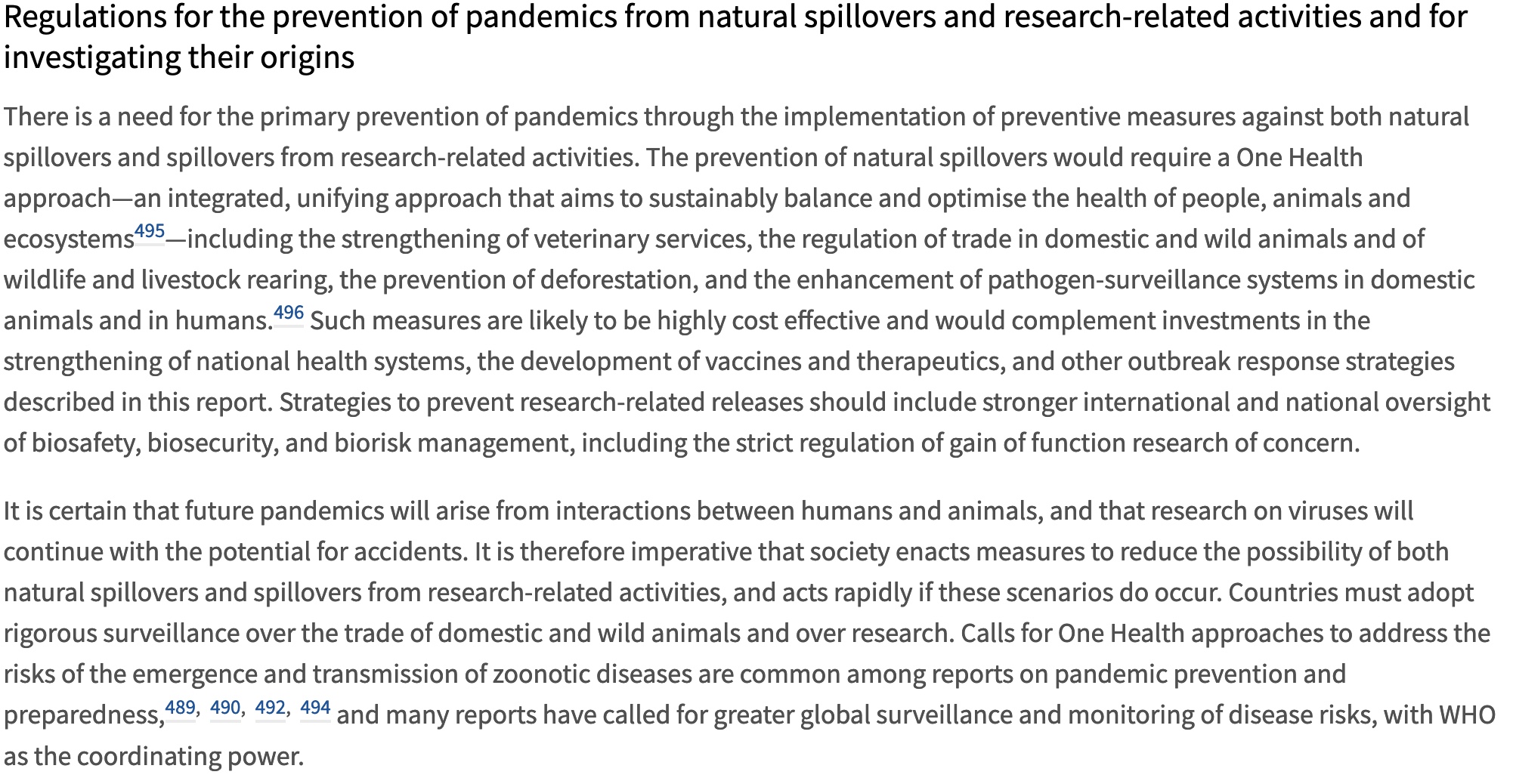 Now he calls for One Health and the rest of the phony measures for pandemics. He opens the Overton window a crack to include lab leaks, carefully avoiding mention of the possibility of deliberate release. Of course, WHO is to be the “coordinating power.”