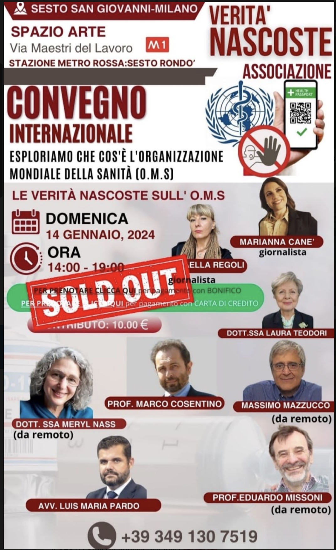 I will be the keynote speaker at this conference on the WHO and how it will affect Italy, tomorrow