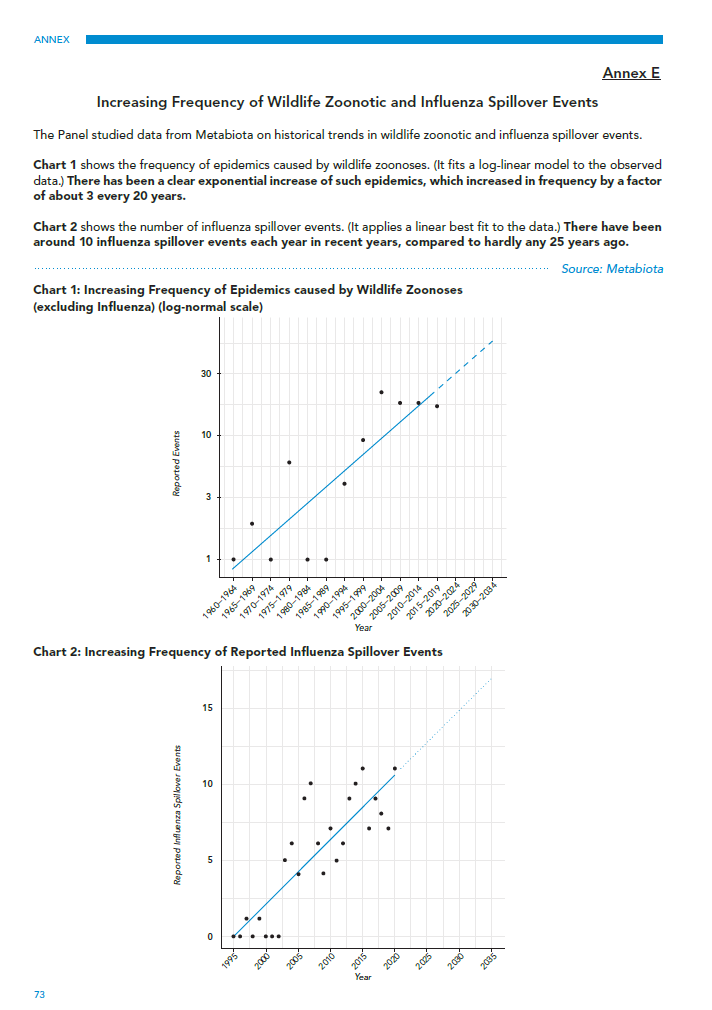 “There has been an acceleration of zoonotic spillovers over the last three decades. (See Annex E.)”