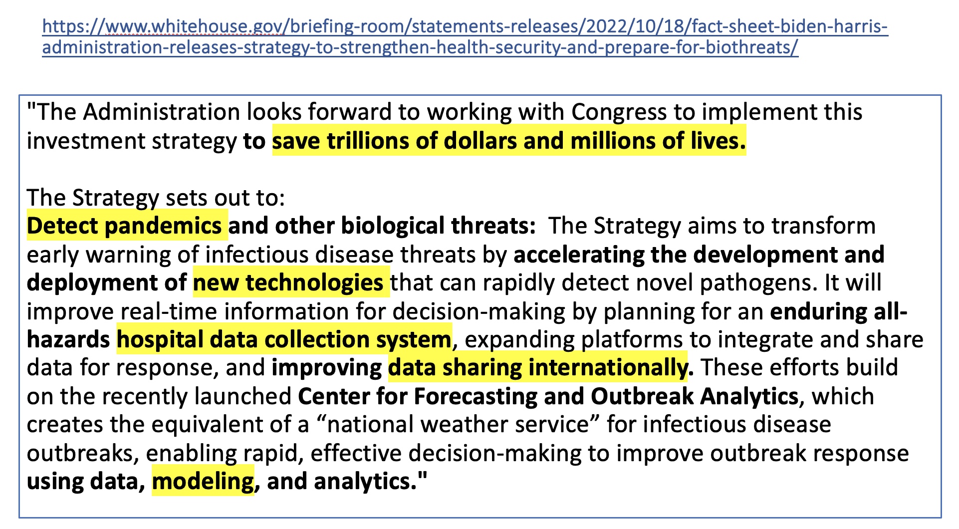 The White House admits we don’t know how to prevent pandemics, so we will spend your money developing new technologies that so far have not worked, but we are happy to share your medical records internationally in our efforts to seek out pandemics: