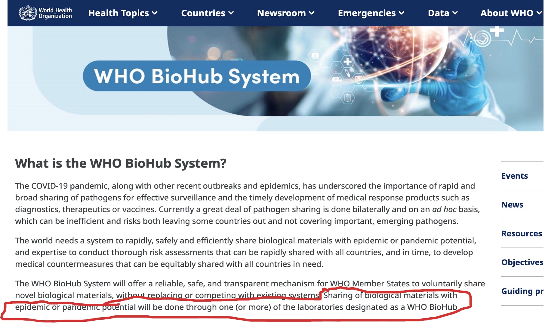 What happened is that Daszak’s EcoHealth PREDICT program got internationalized and rolled up into the WHO, with every nation now to be instructed to do what Peter Daszak paid a few countries to do: go find potential Biowarfare agents and give them to the WHO, which will “share them globally.”