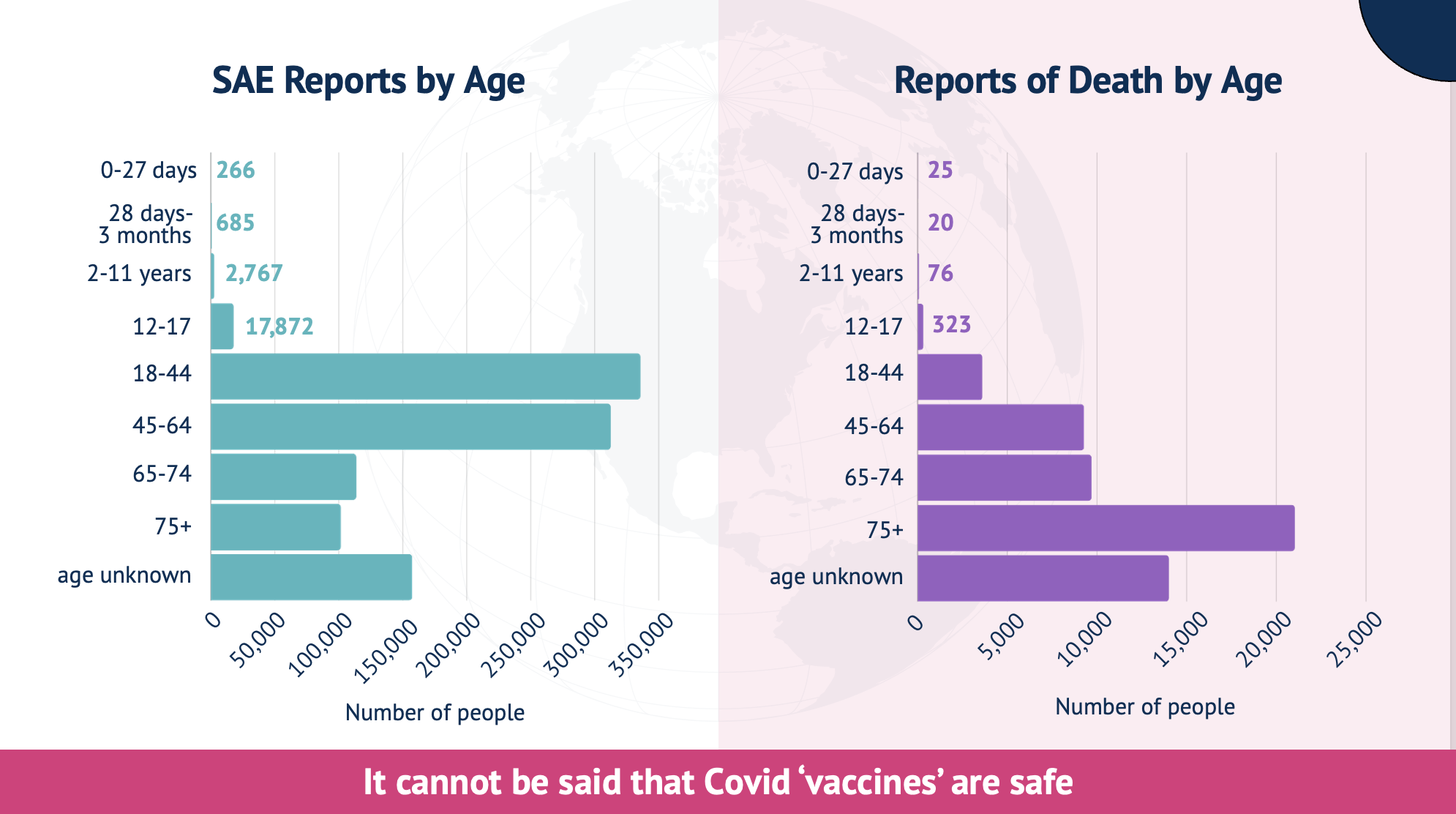 Sixty-one percent of serious adverse events and 42% of deaths were among women. However, especially concerning are the data on children, with 21,590 serious adverse events reported among children, including four hundred and forty-four (444) child deaths. Children were not a high risk group for Covid-19.