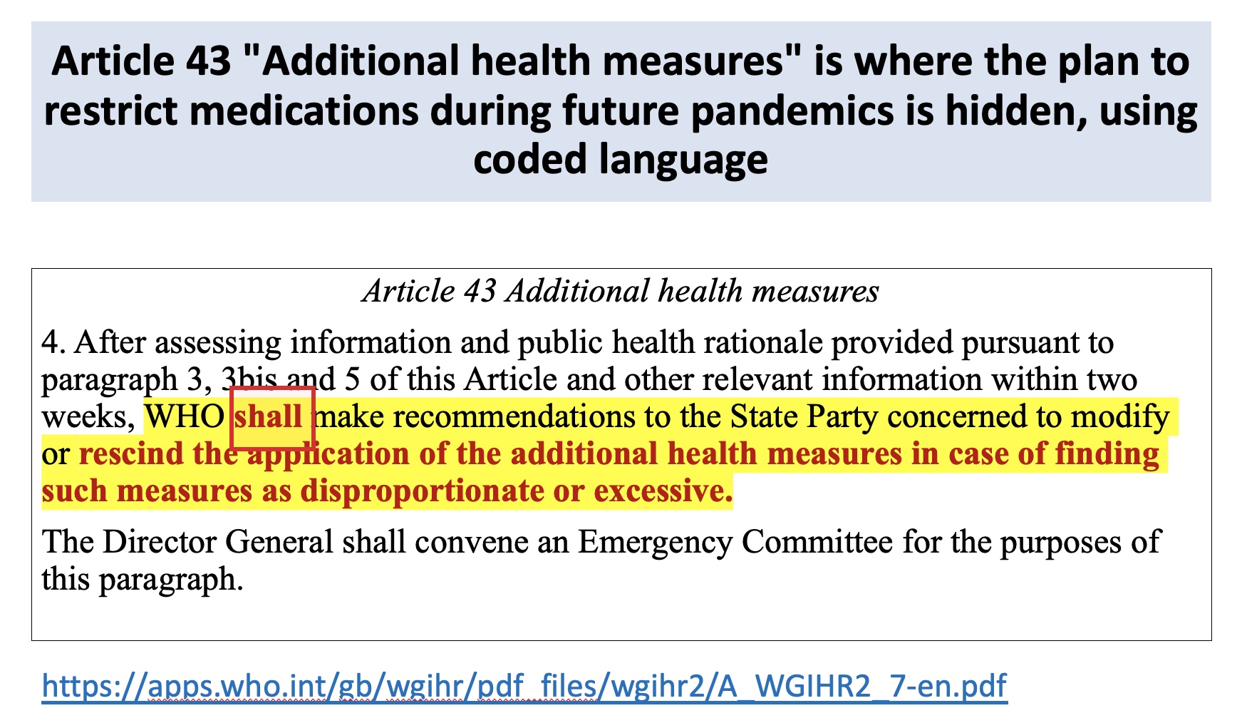 Below, the treaty is forced to admit that the so-called sovereignty that Tedros claims we will retain— the ability to pass laws—will in fact be subject to the orders of the WHO.