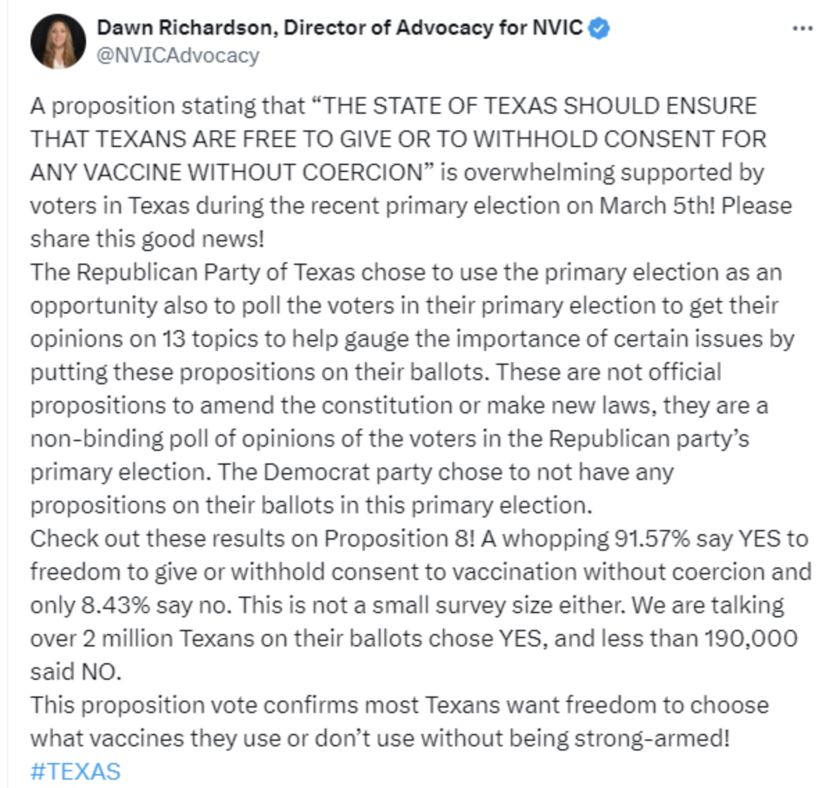 The Texas GOP polled citizens during a primary yesterday, asking if they wanted the freedom to accept or reject vaccines of their choice