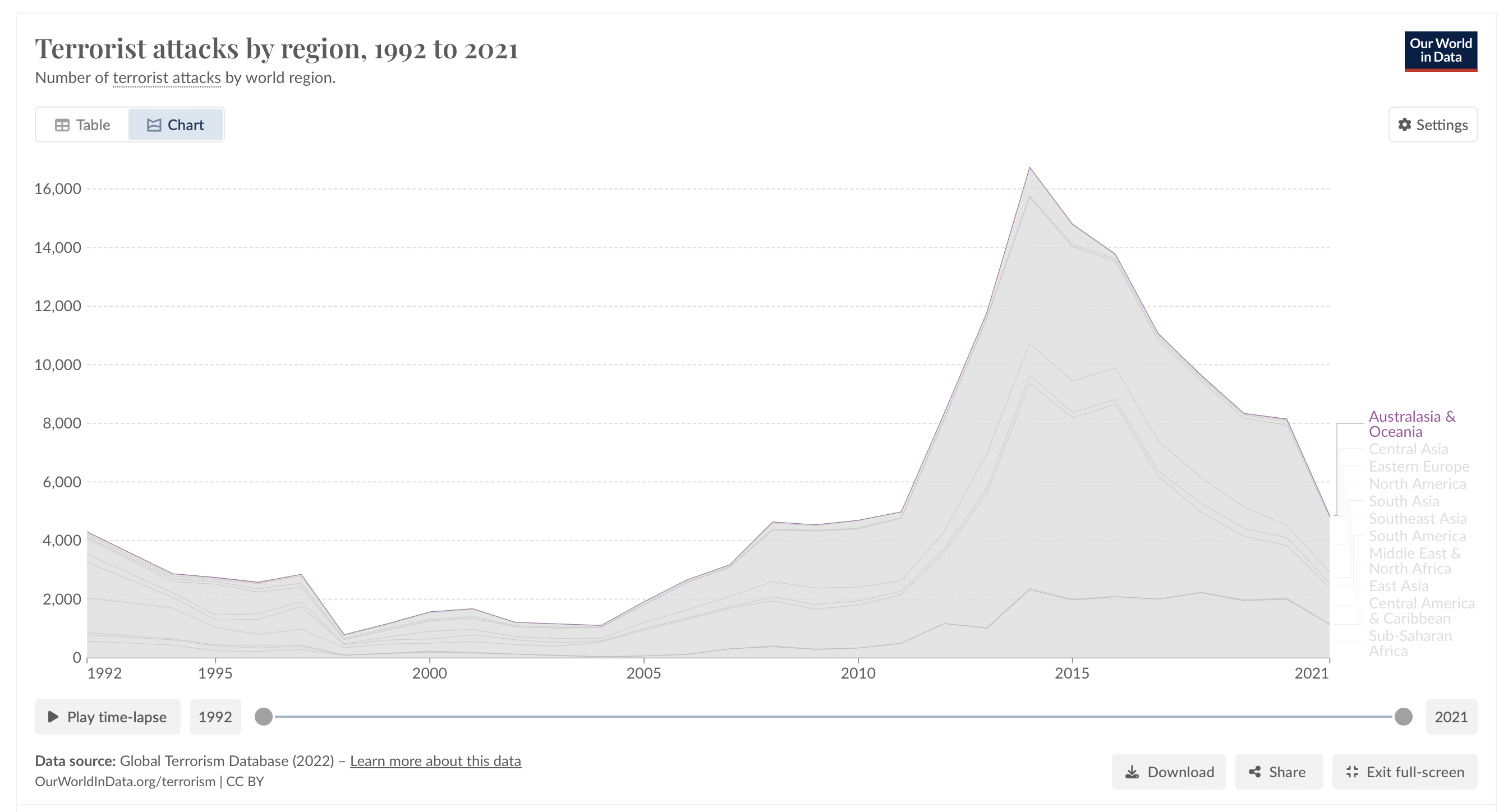 The fact of the matter is that terrorism is incredibly rare and on the decline. Most of it is in the Middle East and South Asia, with tiny amounts in North America and countries like New Zealand.