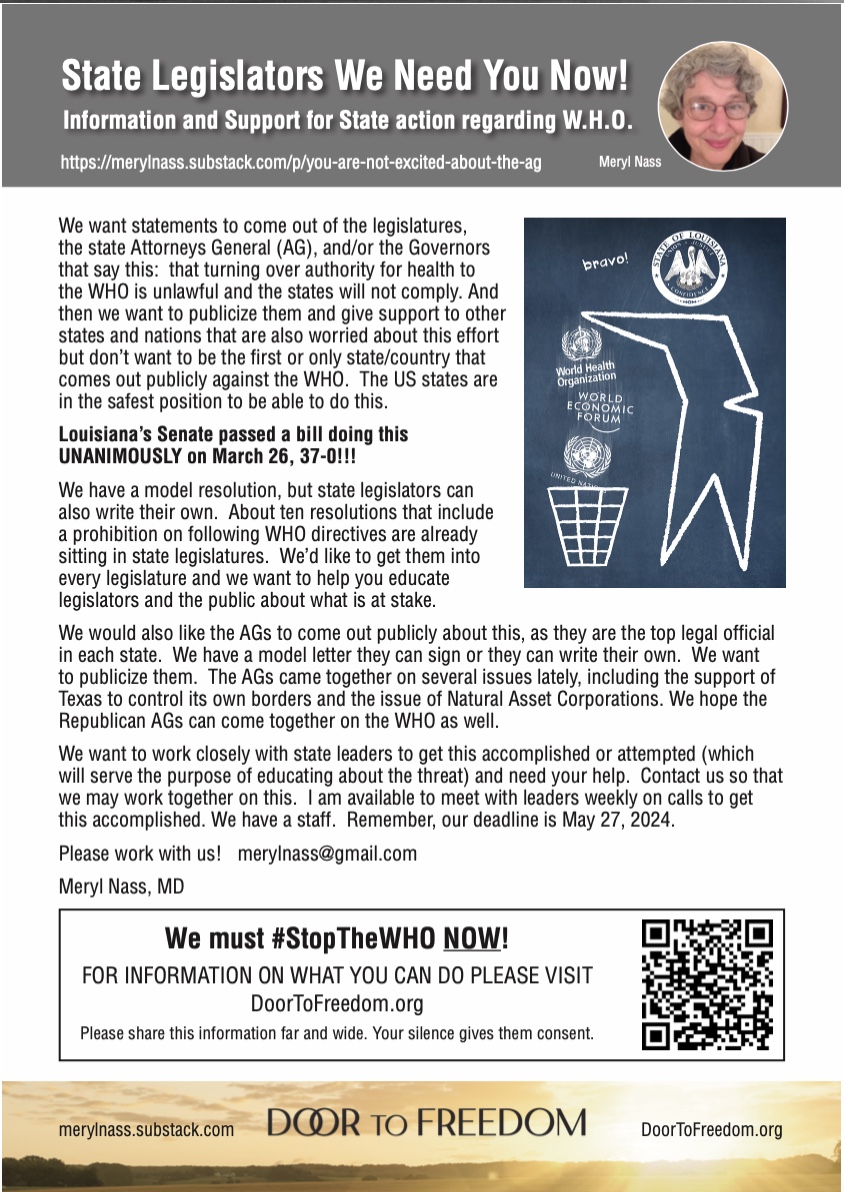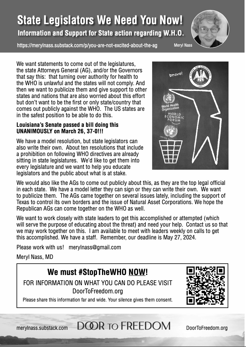 Original URL: https://merylnass.substack.com/p/two-new-important-articles-on-the Why Does the WHO Make False Claims Regarding Proposals to Seize States’ Sovereignty? By David Bell and Thi Thuy Van Dinh. If it is indeed the case that our authorities and their supporters within the public health community consider that powers currently vested within national jurisdictions should be given over to external bodies…