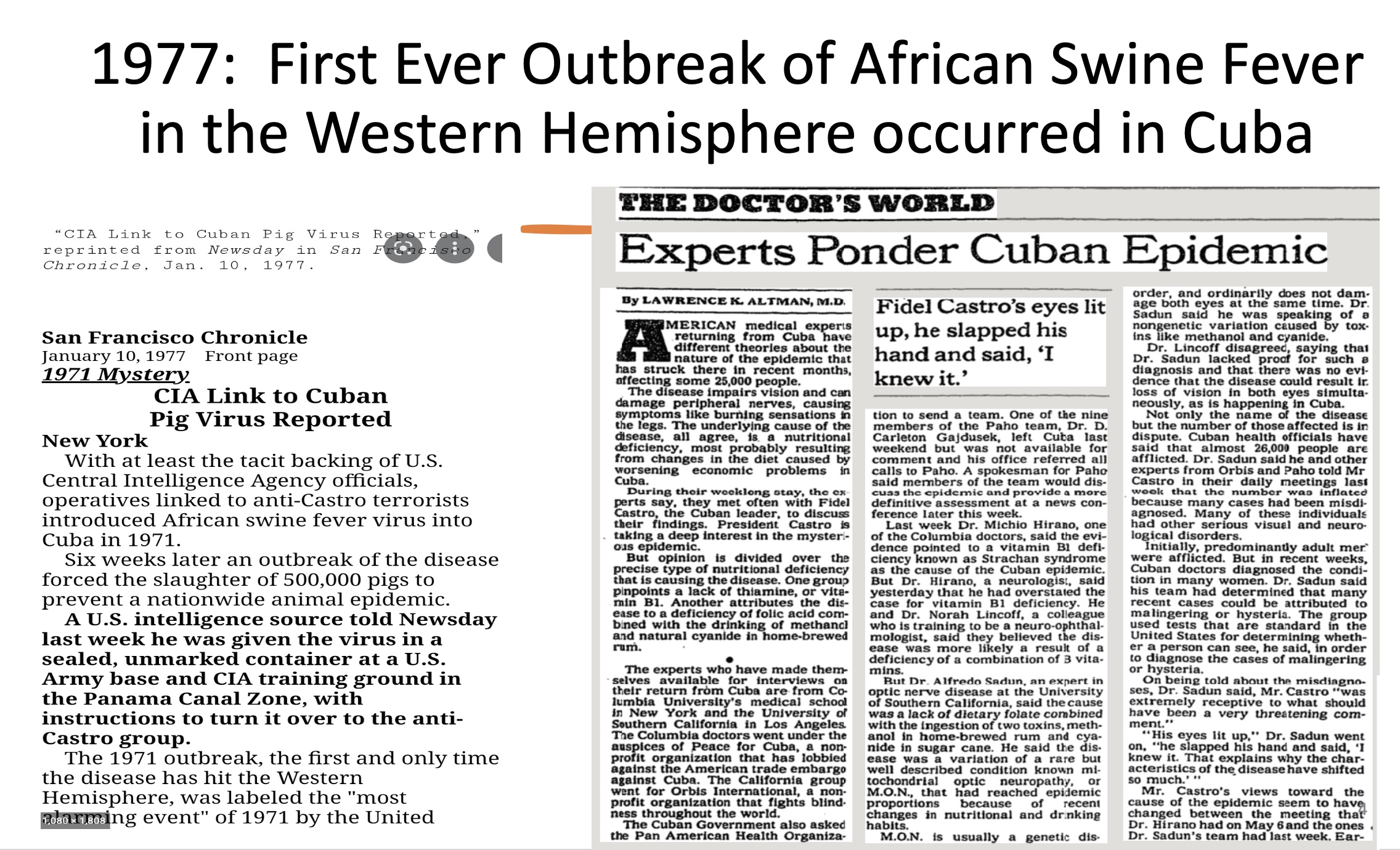 Historically most biowarfare agents were naturally occurring viruses or bacteria. Here is one example in which whistleblowers identified the hand of the CIA.