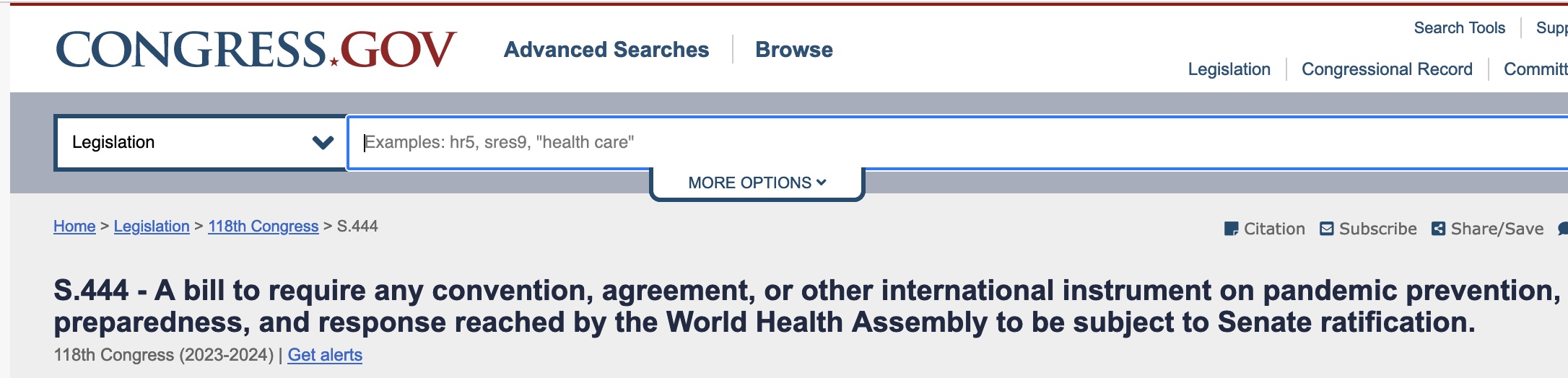 Ron Johnson’s Bill S444 to require the Senate to Ratify (with 2/3 vote) WHO treaty has now achieved 49 cosponsors