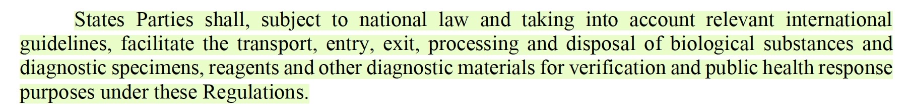 And also inserted into Article 46 is this gem that directs nations to allow specimens from potential pandemic pathogens to transit their nations, even though this is prohibited under US domestic law.