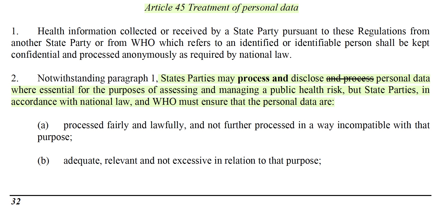 I have said that WHO wants your personal medical records, and they want to be able to disclose them as well, it appears: