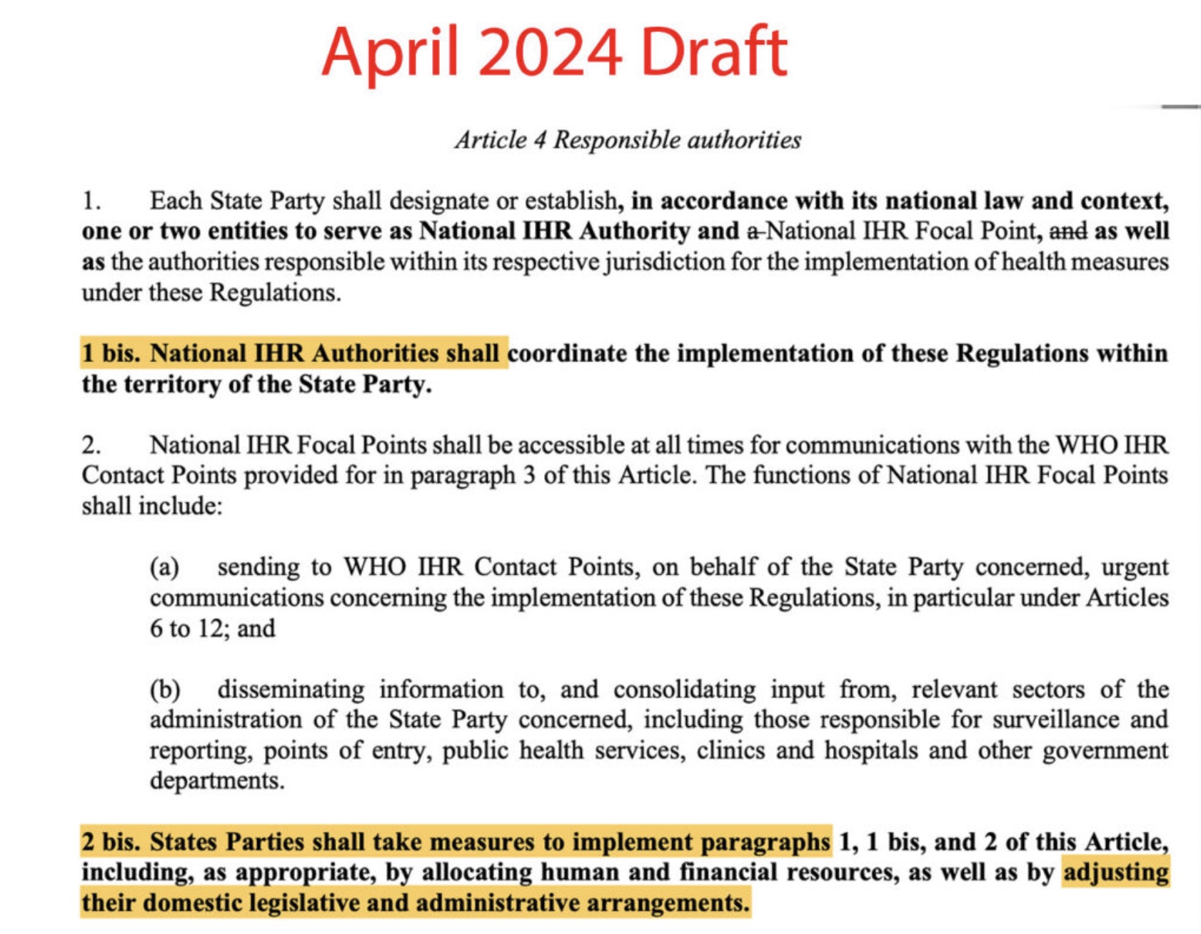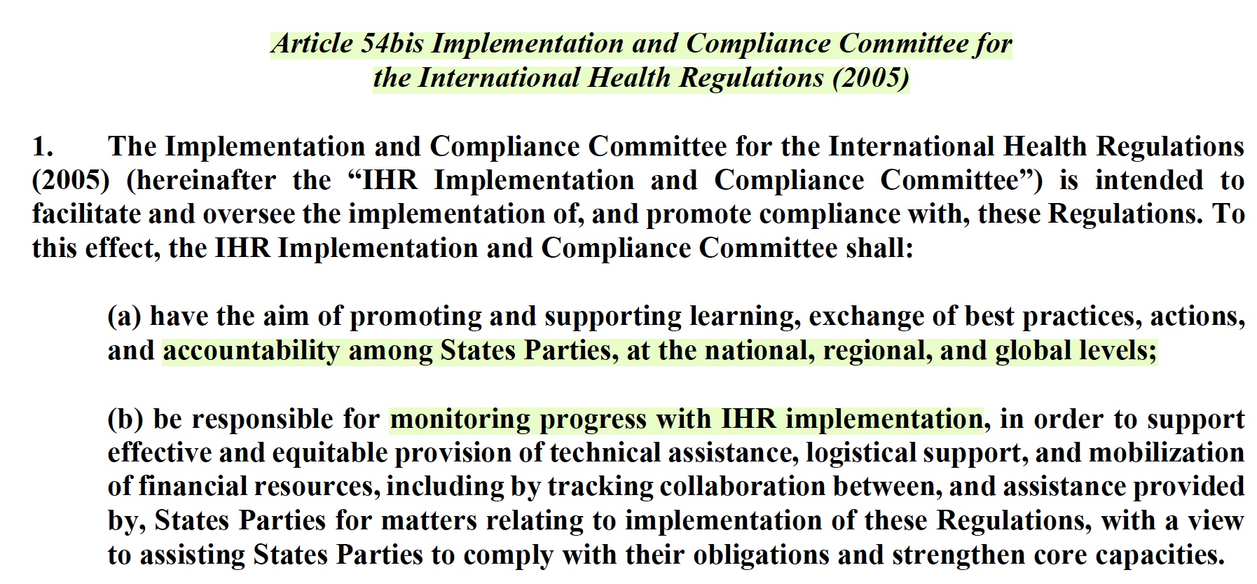 So what if “the term “non-binding” is no longer crossed out? The document is still binding on nations due to other language, the requirement to report back to the WHO on how well nations are complying, and the new compliance and implementation committee, which will ride herd on nations that do not comply.