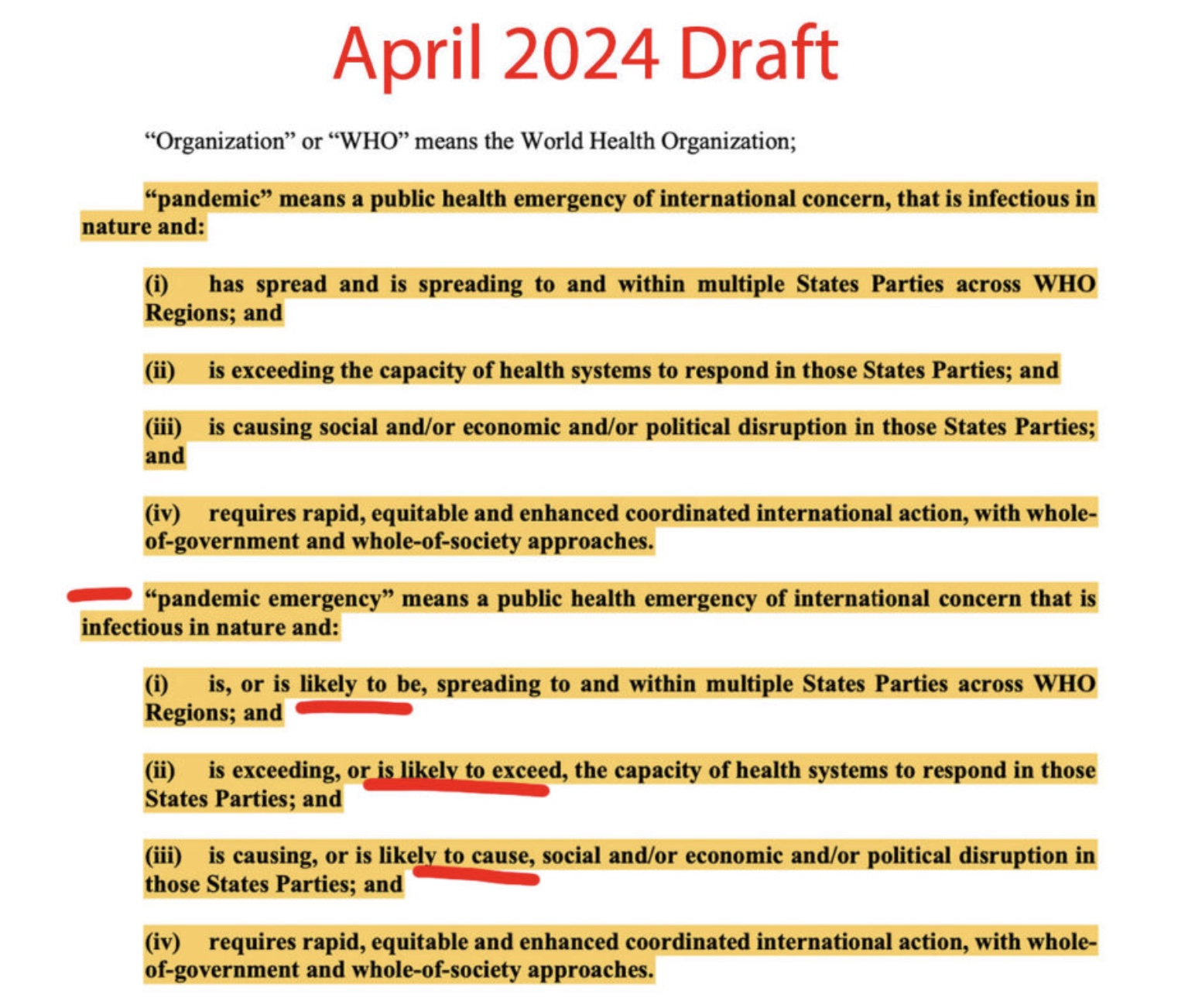 The language stating that the WHO D-G could designate potential pandemics has been replaced with likely pandemics. A weasel way of saying the same thing.