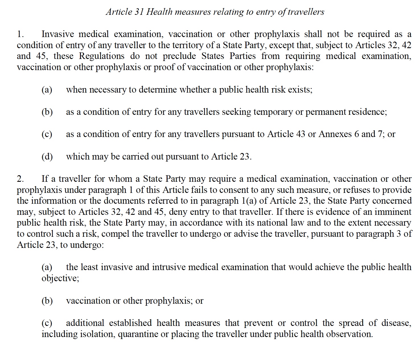And then Article 23 is one of those that gives you a guarantee of following the law, EXCEPT in certain cases when governments can impose other measures, or force vaccinations or other health measures.